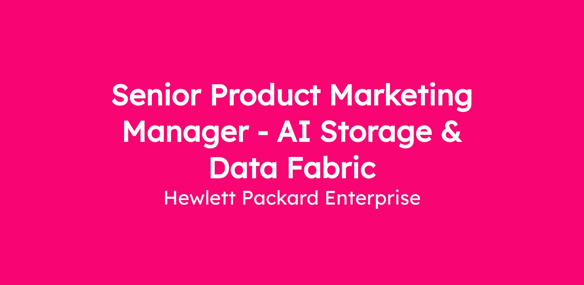 Senior Product Marketing Manager - AI Storage & Data Fabric