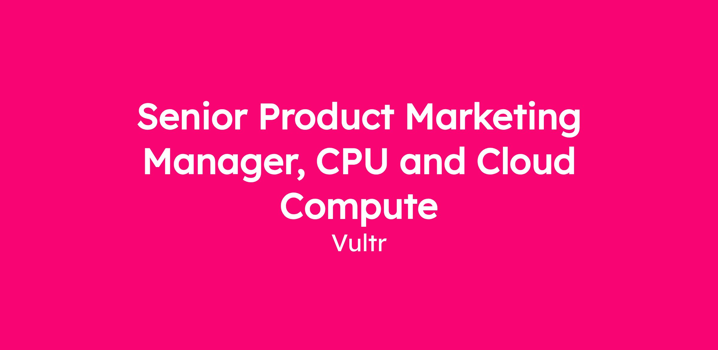Vultr is seeking a Senior Product Marketing Manager who will report into the Director, Product Marketing. The ideal candidate is a strategic thinker, outcome-driven, and excited to work cross-functionally within Vultr and our partner community to deliver sales results. Our team’s mission is to build brand, drive demand, and make Vultr the #1 independent Cloud platform alternative to the hyperscalers. We believe in helping organizations drive down the costs of running their Cloud infrastructure to accelerate investment in building new digital services and businesses. This is your opportunity to join this fun, creative, and aggressive team and leave your mark on Vultr and the future of Cloud Infrastructure.