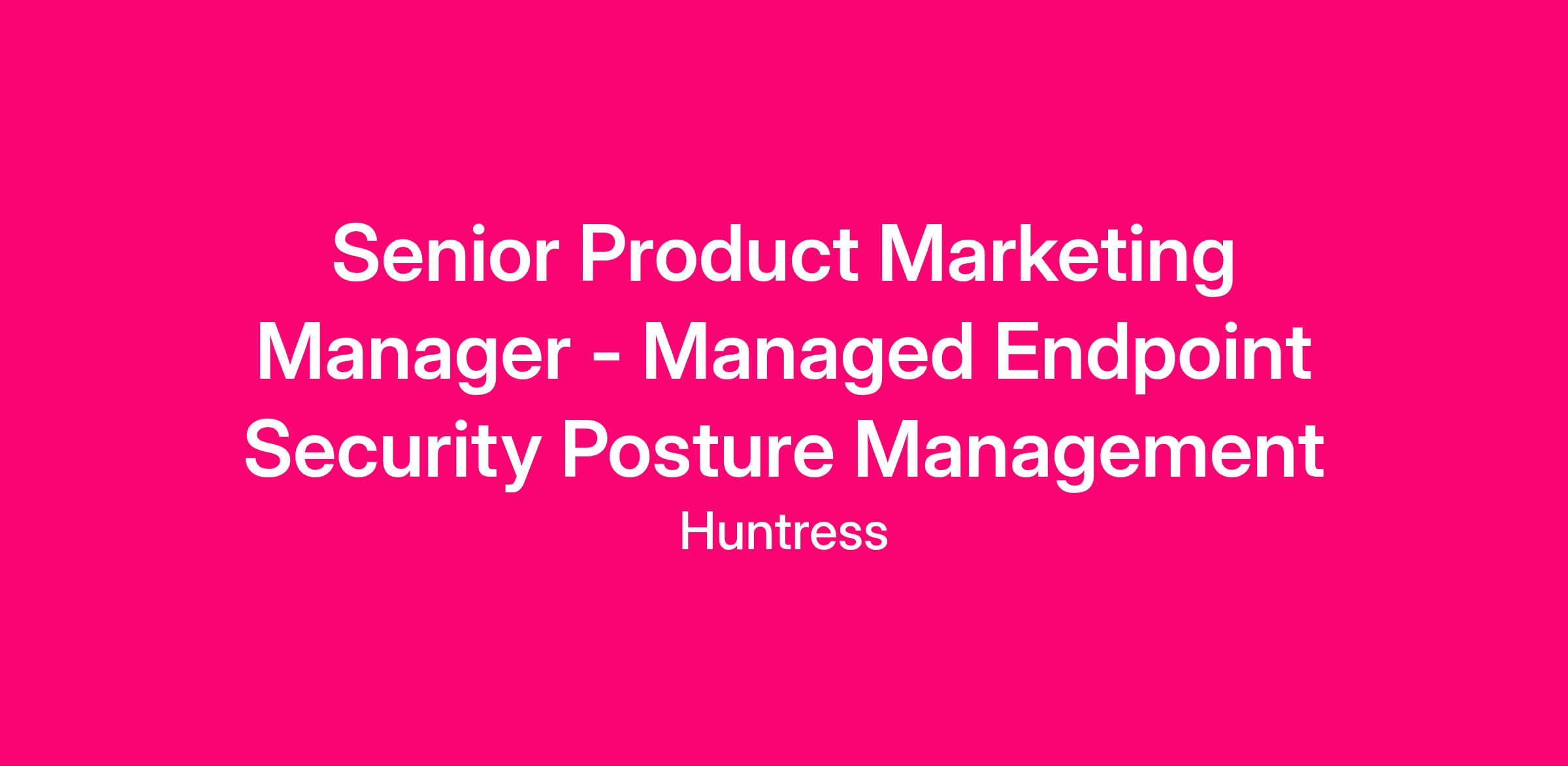 Huntress is looking for a Senior Product Marketing Manager for Huntress Managed Endpoint Security Posture Management (ESPM). In this role, you will be responsible for positioning and messaging, content creation, sales enablement, product launches, and the overall go-to-market strategy for an exciting new product addition to Huntress' industry-leading solutions and Platform.