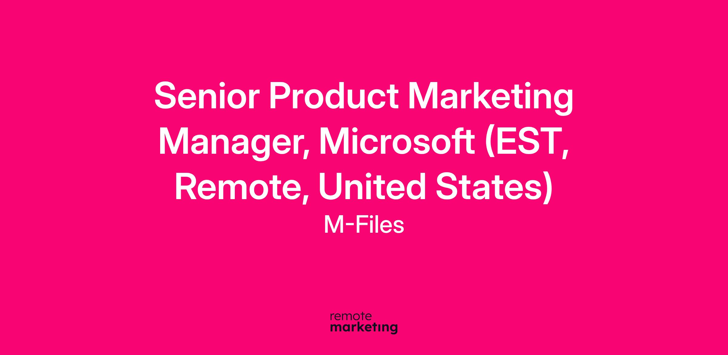 Reporting to our Senior Director of Product Marketing with strong collaboration and dotted line to our Vice President, Strategic Operations & Corporate Development, M-Files is seeking a highly skilled and proactive Senior Product Marketing Manager - Microsoft, to focus exclusively on our Microsoft partnership activities. This is a unique opportunity to act as an evangelist for the partnership as well as drive joint marketing, positioning, and go-to-market strategies that showcase the combined value of Microsoft and M-Files solutions. The ideal candidate will be passionate about building strong relationships with Microsoft stakeholders and capable of driving complex, cross-functional initiatives from strategic planning through tactical execution.