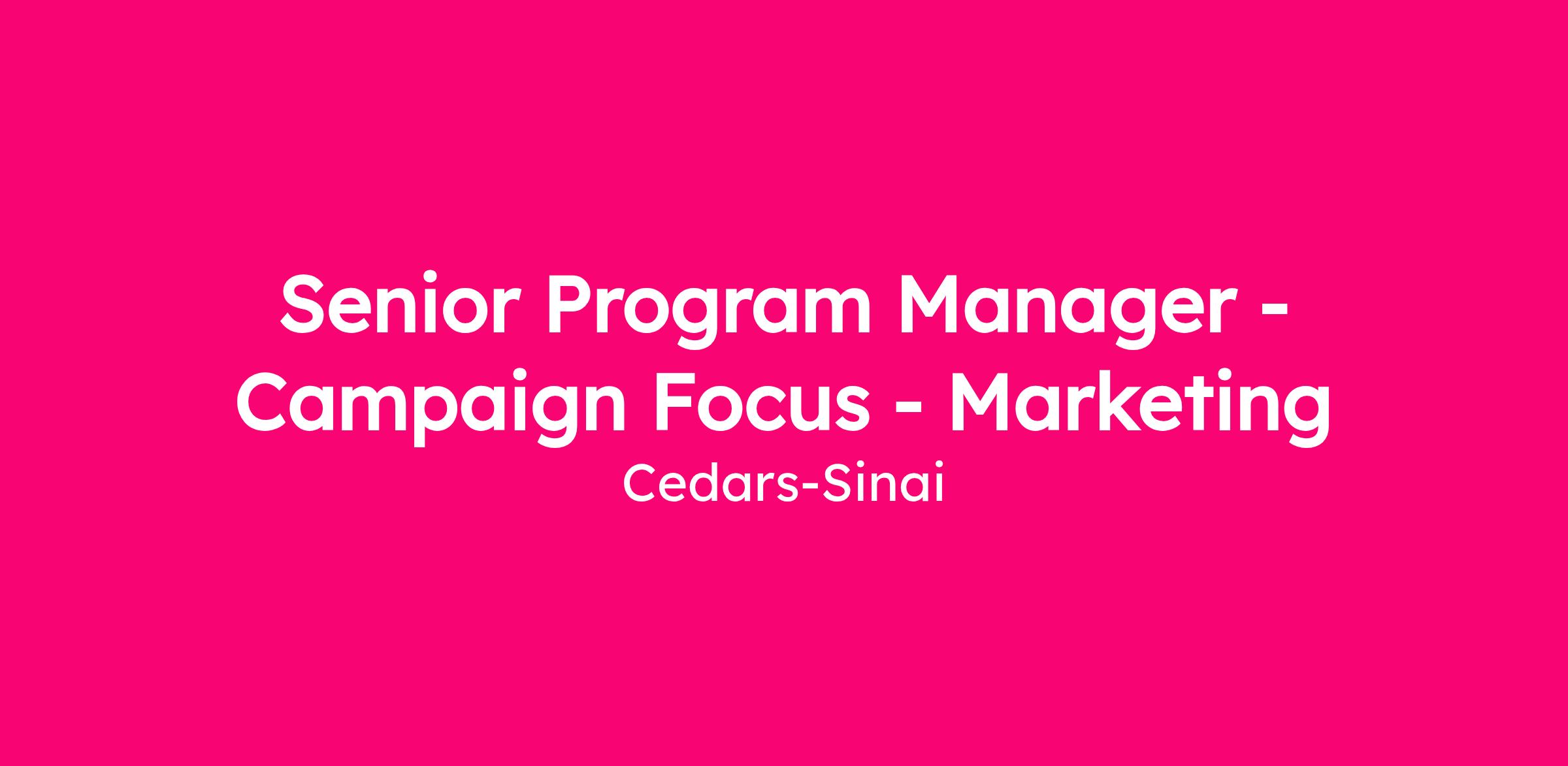 Cedars-Sinai presents an exciting opportunity for a campaign focused Senior Program Manager to join our Creative Studio within the Marketing and Communications department. This outstanding role allows you to design engaging strategies and bring them to life across various digital touchpoints. As a Senior Program Manager, you will enable our ambitious marketing efforts by managing and delivering innovative projects across various touchpoints. You will work with different teams to develop and implement comprehensive work that aligns with Cedars-Sinai business goals and audience needs. Your role involves collaborating closely with internal partners to ensure consistent messaging and branding across all channels.