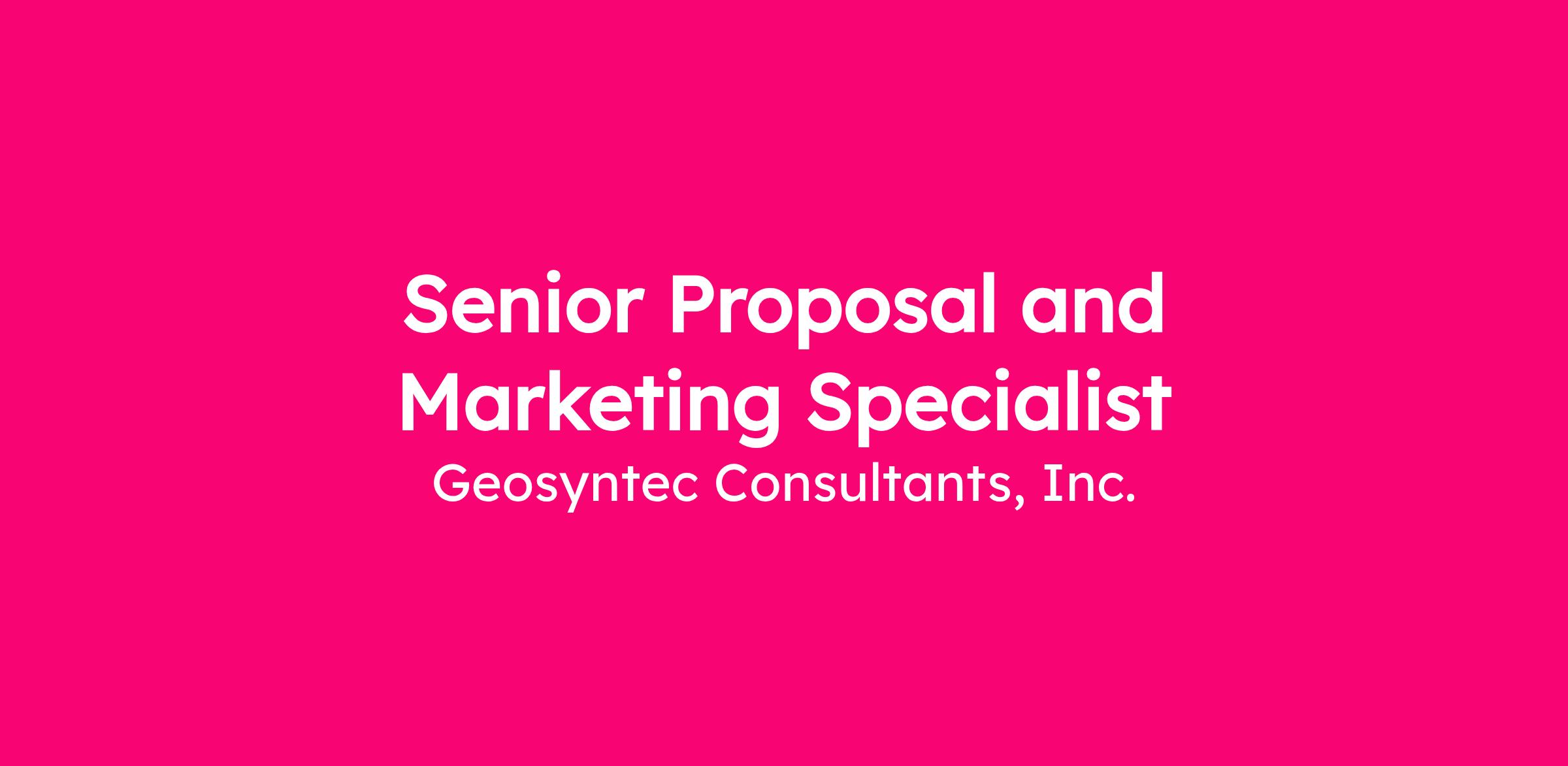 Geosyntec has an exciting opportunity for a Senior Marketing and Proposal Specialist supporting our North America East region, the opportunity to work remotely from your home-office in San Antonio, TX may be available at the discretion of the Company. The position will Develop compliant, comprehensive, and compelling submittals (proposals and opportunity-specific statements of qualifications (SOQs)) on a regional or corporate level in order to win profitable work. Responsible for managing, scheduling, editing, and producing proposals, opportunity-related SOQs, project descriptions, resumes, and other marketing materials in accordance with Geosyntec’s policies, government regulations and copyright laws. Work requires the exercise of considerable initiative and independent judgment.