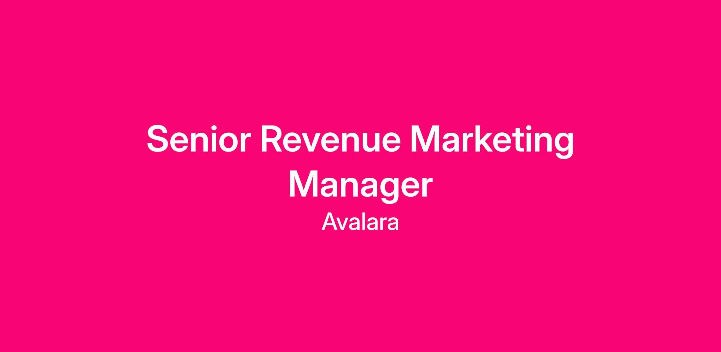 As a Senior Revenue Marketing Manager, you will oversee the strategy of integrated demand generation programs that create pipeline and revenue growth for high-growth businesses targeting US-based customers. You will partner with Sales, Sales Development, Field Marketing, and Product Marketing teams in the US to deliver full-funnel campaigns within Avalara's fast growth products. You will sit within the Revenue Marketing team and reports to the Director of Revenue Marketing, playing a critical role in scaling predictable revenue.
