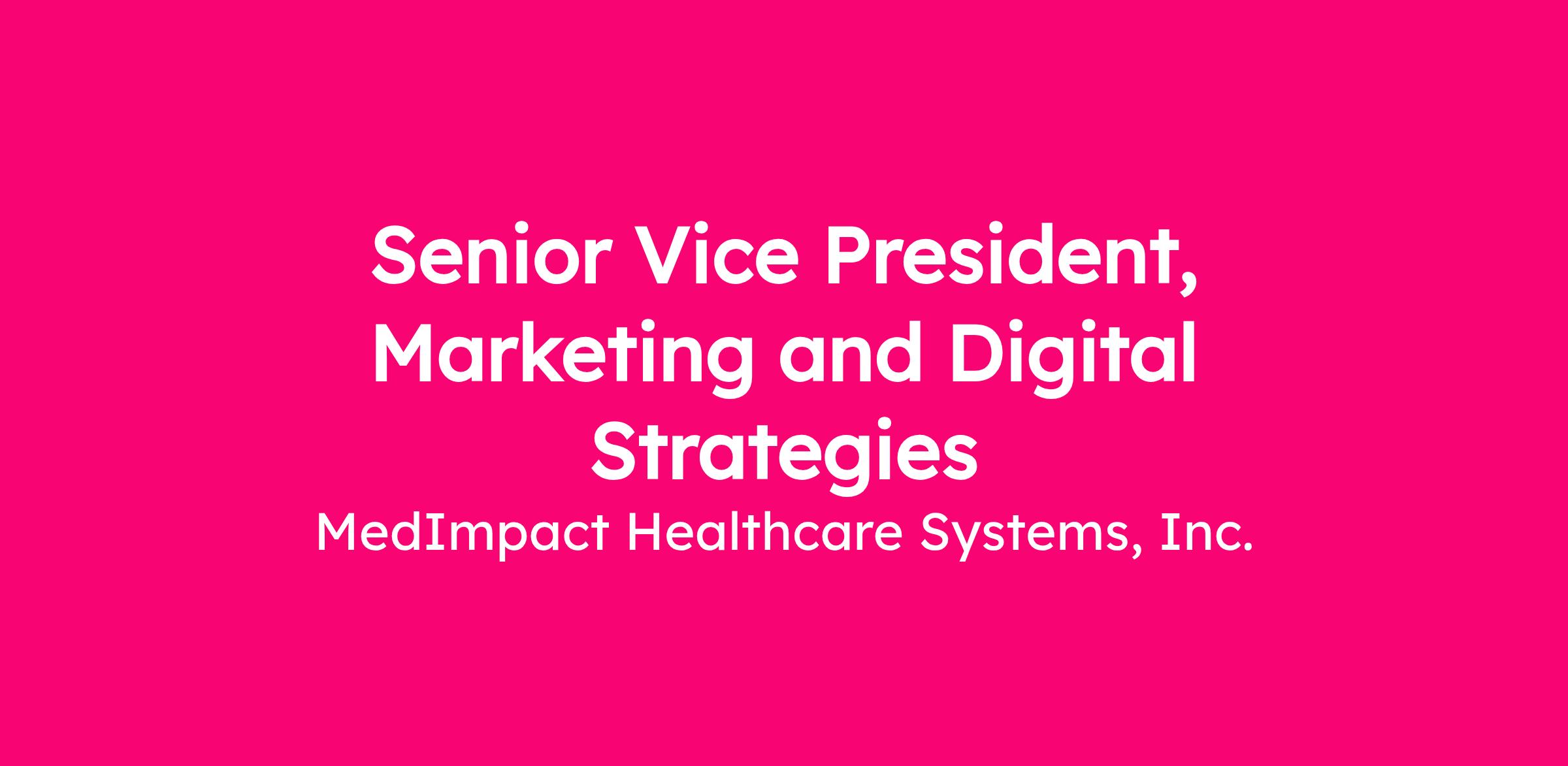 The Senior Vice President (SVP), Marketing and Digital Strategy leads enterprise marketing and digital strategy across MedImpact’s PBM platform and healthcare portfolio. Drives brand positioning, demand generation, and revenue growth through aligned, data-driven practices, while overseeing marketing investment, programs, and teams.
