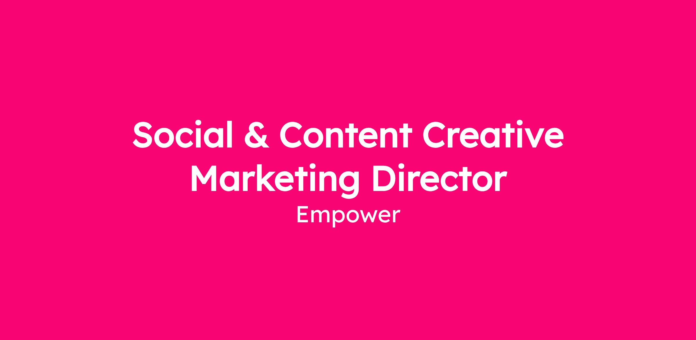 The Creative Director, Social & Content is a hands-on creative leader responsible for shaping Empower’s social-first brand expression and driving high-impact content creative across modern platforms. This role elevates Empower’s visual identity and storytelling through platform-native creative development, rapid content production, and a strong strategic viewpoint. It requires a forward-thinking creative visionary with expertise in social platforms, short-form video, design, and content innovation—supported by the leadership maturity to guide contributors, partner with stakeholders, and uphold a consistent brand experience across all social and content initiatives.