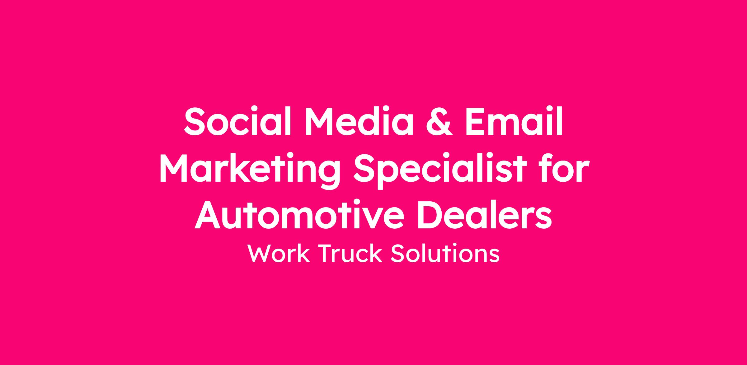 Work Truck Solutions is seeking a talented and creative Commercial Dealer Marketing Specialist to join our Professional Services team. In this role, you'll be responsible for developing and executing paid social media and email marketing campaigns for our commercial vehicle dealer base. You'll play a key role in ensuring our customers get the best possible return on investment (ROI) from our add-on marketing services.