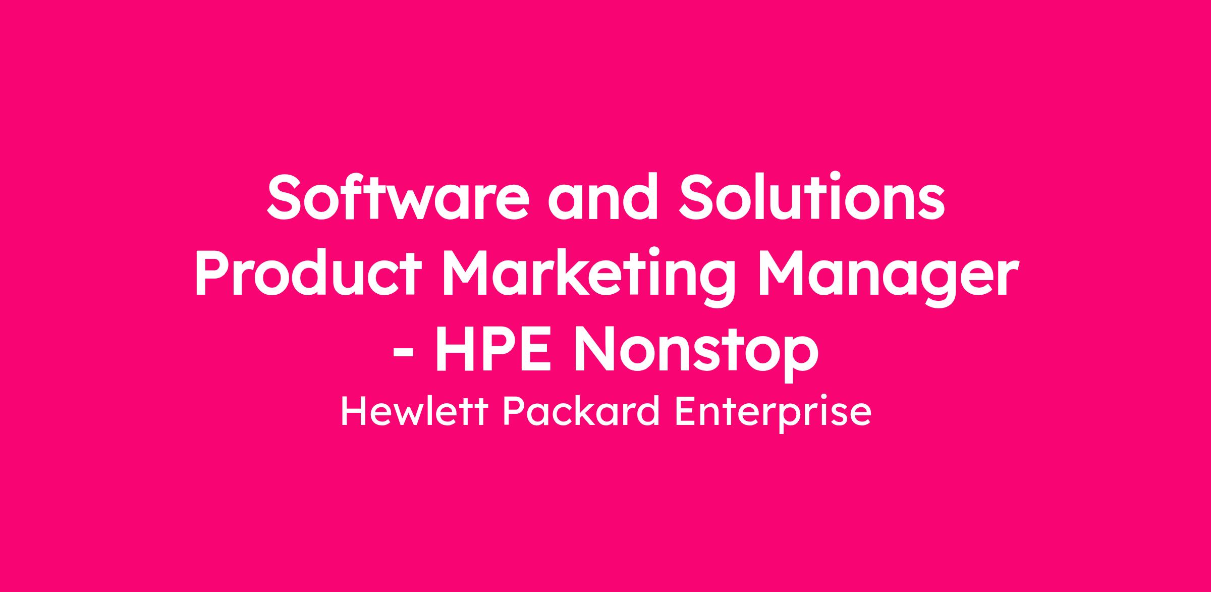 Software and Solutions Product Marketing Manager - HPE Nonstop