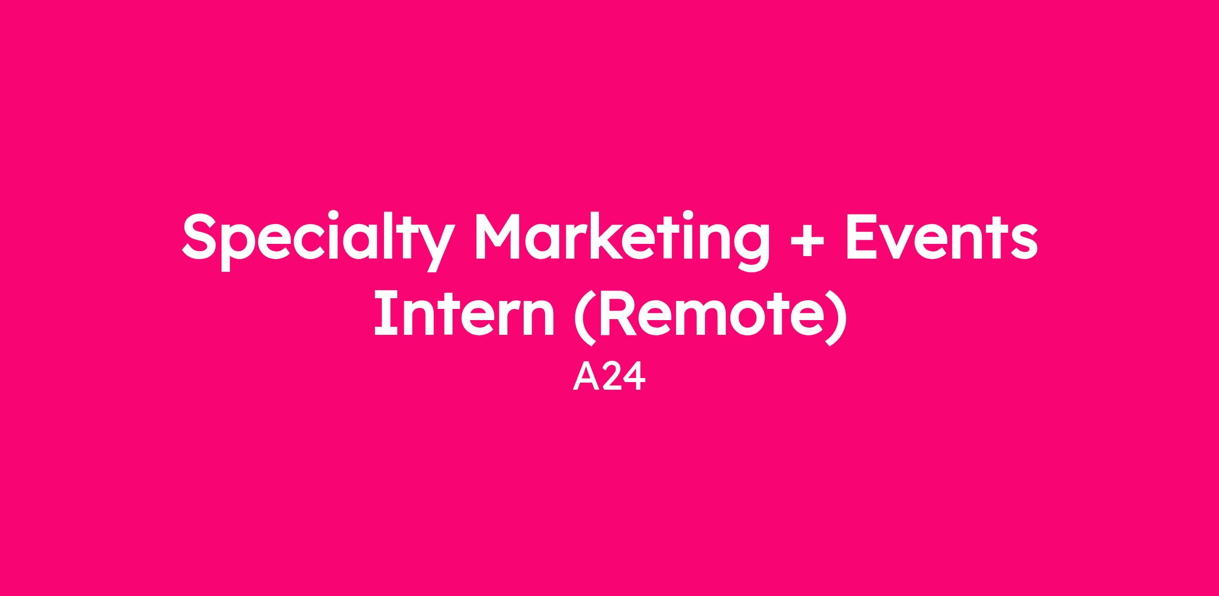 A24 is looking for a part-time, remote intern to support the Specialty Marketing team starting May 1, 2026 -- must be available up to 15 hours per week.