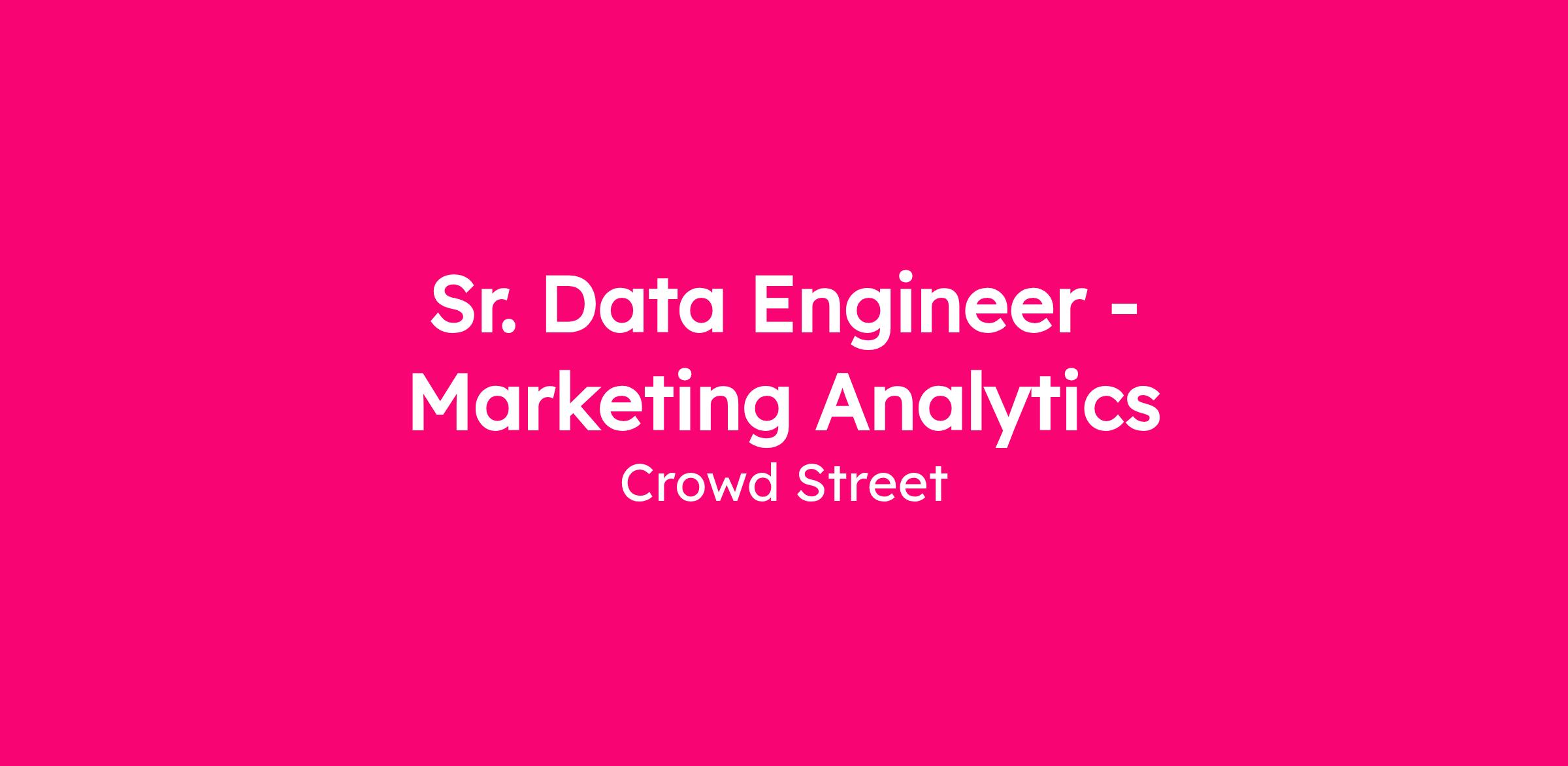 As a Senior Data Engineer, Marketing Analytics, you will play an integral role in building Crowd Street’s new data platform from zero to one. You will have the opportunity to influence the architecture of our new data platform and be responsible for the full lifecycle of software development, including design, implementation, testing, documentation, operation, and ongoing support. In this role, you will interact directly with teams across Crowd Street’s business to translate ambiguous data needs into actionable initiatives with particular emphasis on supporting Marketing with timely data collection and aggregation across various sources, as well as the creation of actionable reporting on key Marketing performance indicators.