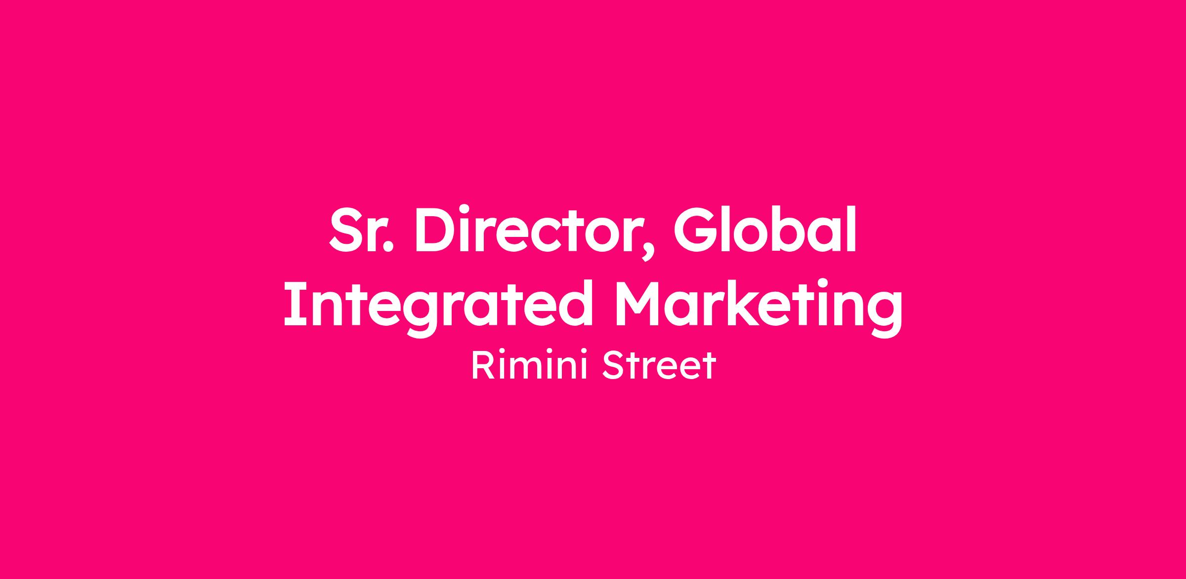 Rimini Street is seeking a bold, forward thinking Sr. Director of Global Integrated Marketing to lead the next phase of the company’s marketing evolution across content, campaigns, paid media and events. As an organization built on delivering “extraordinary technology solutions powered by extraordinary people,” this role is pivotal in setting the vision, strategy and operating model for how Rimini Street shows up in the market and drives growth.