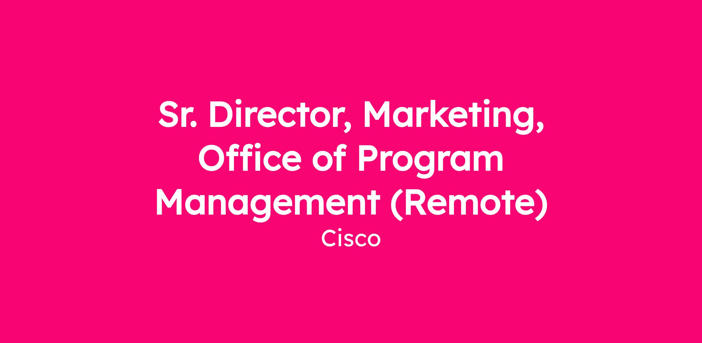 Cisco's Global Revenue, Field & Partner Marketing team is seeking an organized and motivated Sr. Director for its team to lead strategic initiatives for Cisco and Cisco Marketing throughout the organization. Responsible for driving transformation plans for Global Revenue, Field & Partner Marketing – bringing in Corporate Strategy, Finance and Operations when required.Â