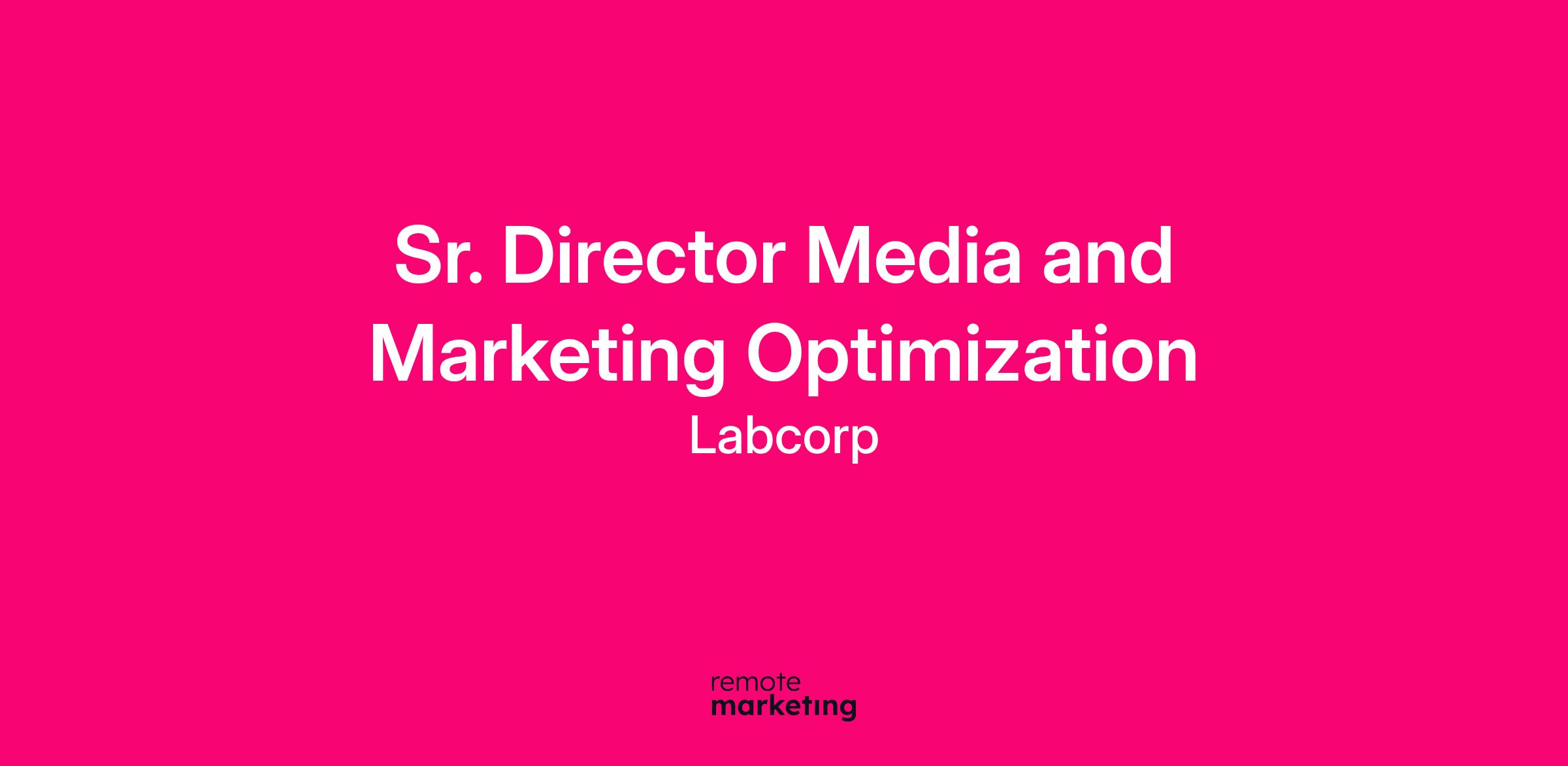 Labcorp is seeking a leader to transform how we plan, execute, and measure media and marketing effectiveness. The Senior Director, Media and Marketing Optimization will partner closely with our segment marketing teams to enhance how we connect with audiences, measure success, and continuously improve.