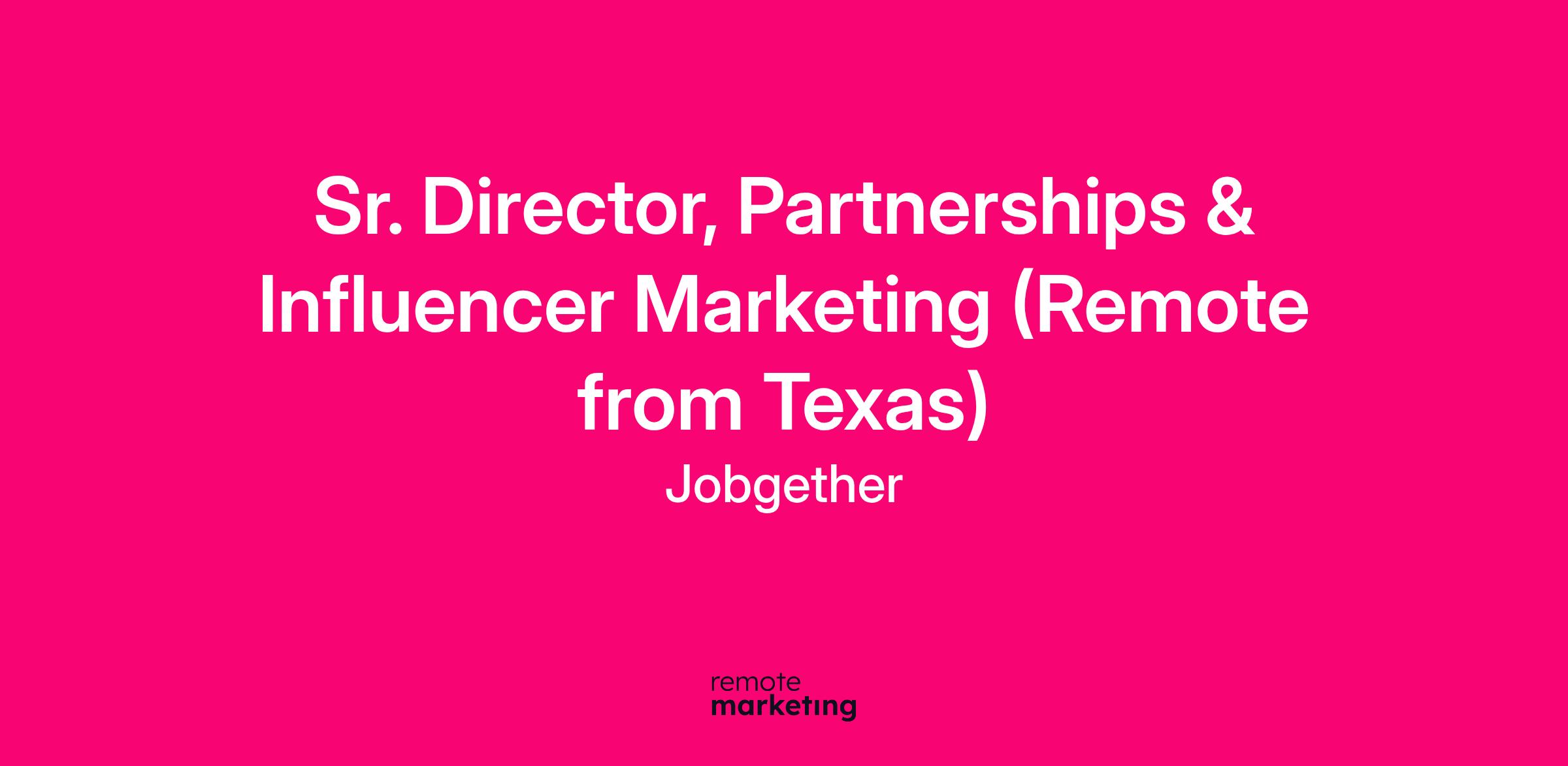 This position is posted by Jobgether on behalf of a partner company. We are currently looking for a Sr. Director, Partnerships & Influencer Marketing in Texas.