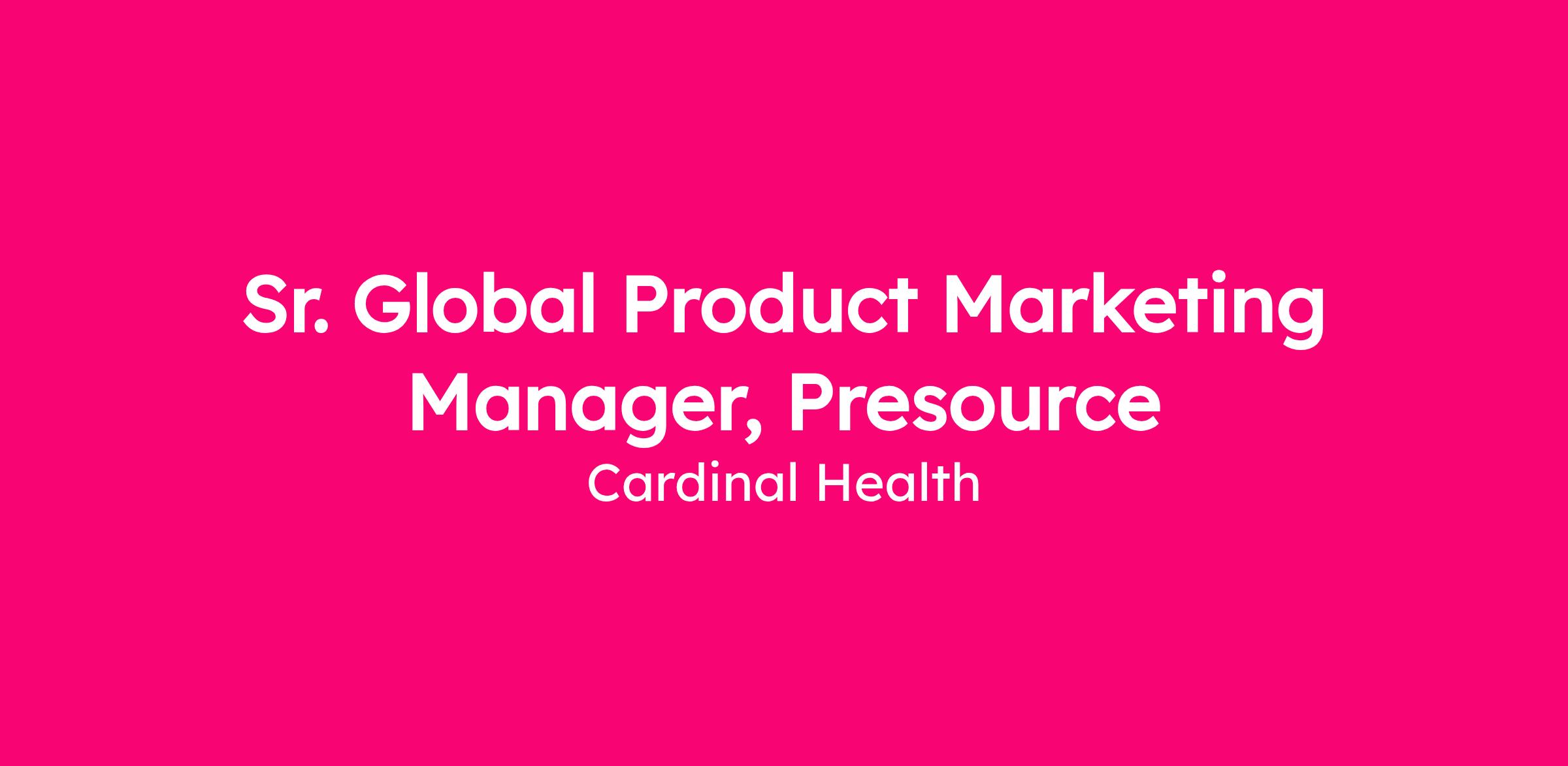 Presource Global Product Marketing develops a suite of components, strategic supplier relationships and standard procedural packs.Ā In this role you are the owner of the upstream product strategy and influence downstream for various procedural portfolio of products.Ā