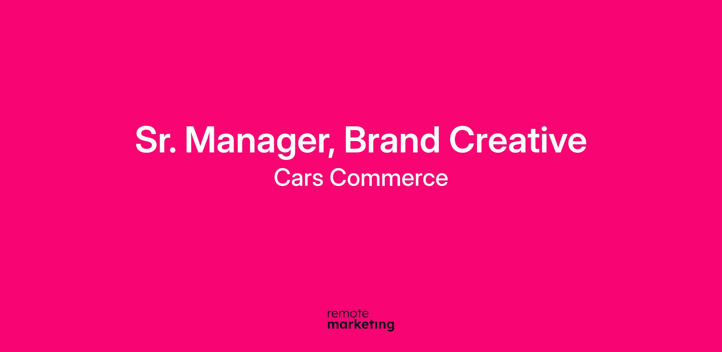 Directly overseeing copywriting and creative development inside the Cars Commerce Brand Creative organization, the Sr. Manager, Brand Creative is responsible for leading the creative vision, messaging, and execution of marketing campaigns to consumers on behalf of Cars.com B2C brand and businesses on behalf of Cars Commerce’s portfolio of B2B brands. The Sr. Manager, Brand Creative is also responsible for leading our Cars Commerce Brand Studio: a specialized creative group dedicated to partnering with OEMs and national advertisers to activate co-branded consumer campaigns and bespoke publishing on Cars.com.RESPONSIBILITIES