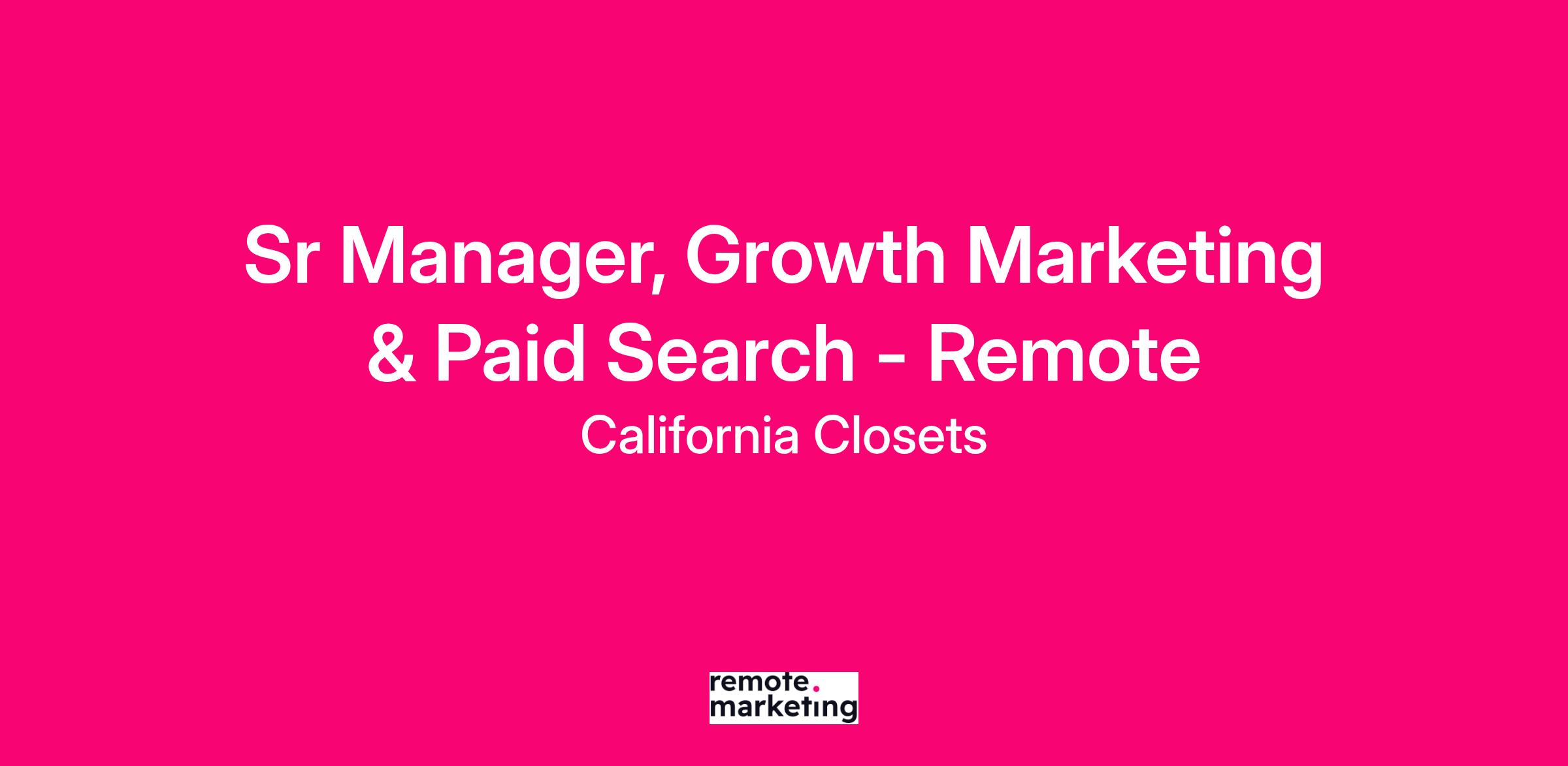 We are seeking a creatively strategic Senior Growth Marketing Manager with a strong focus on Paid Search including Bing and Google Paid Search, Demand Gen, Performance Max and YouTube campaigns. This role will be responsible for using data-driven insights to develop and own paid search strategies, manage media budgets, drive campaign execution, and work cross-functionally to achieve growth and ROI objectives. While this role is focused on paid search, we’re seeking a candidate that is aware of the greater paid digital ecosystem including broadcast, streaming and OTT advertising, paid social, affiliate marketing and their potential impacts on paid search performance. The ideal candidate has a passion for problem-solving, a data-first mindset, and excellent communication skills. You will be part of the Growth Marketing team—a collaborative group of marketers working to expand brand awareness and generate demand for California Closets through conversations with the customer. Optimizing their brand experience from awareness through first contact with us.