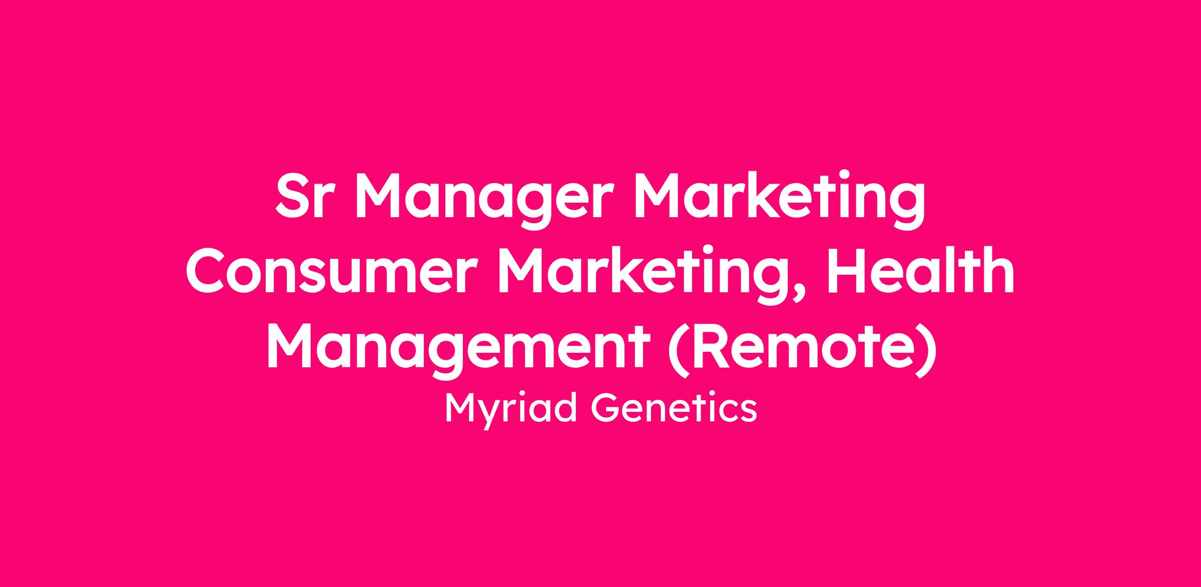 Myriad Genetics is seeking a Sr Manager, Consumer Marketing to lead its consumer-focused marketing campaign strategy and activation across the Health Management portfolio. This role owns the marketing prioritization, plans, and all marketing creation across the Health Management Portfolio, including unaffected hereditary cancer testing, reproductive screening, and mental health management.