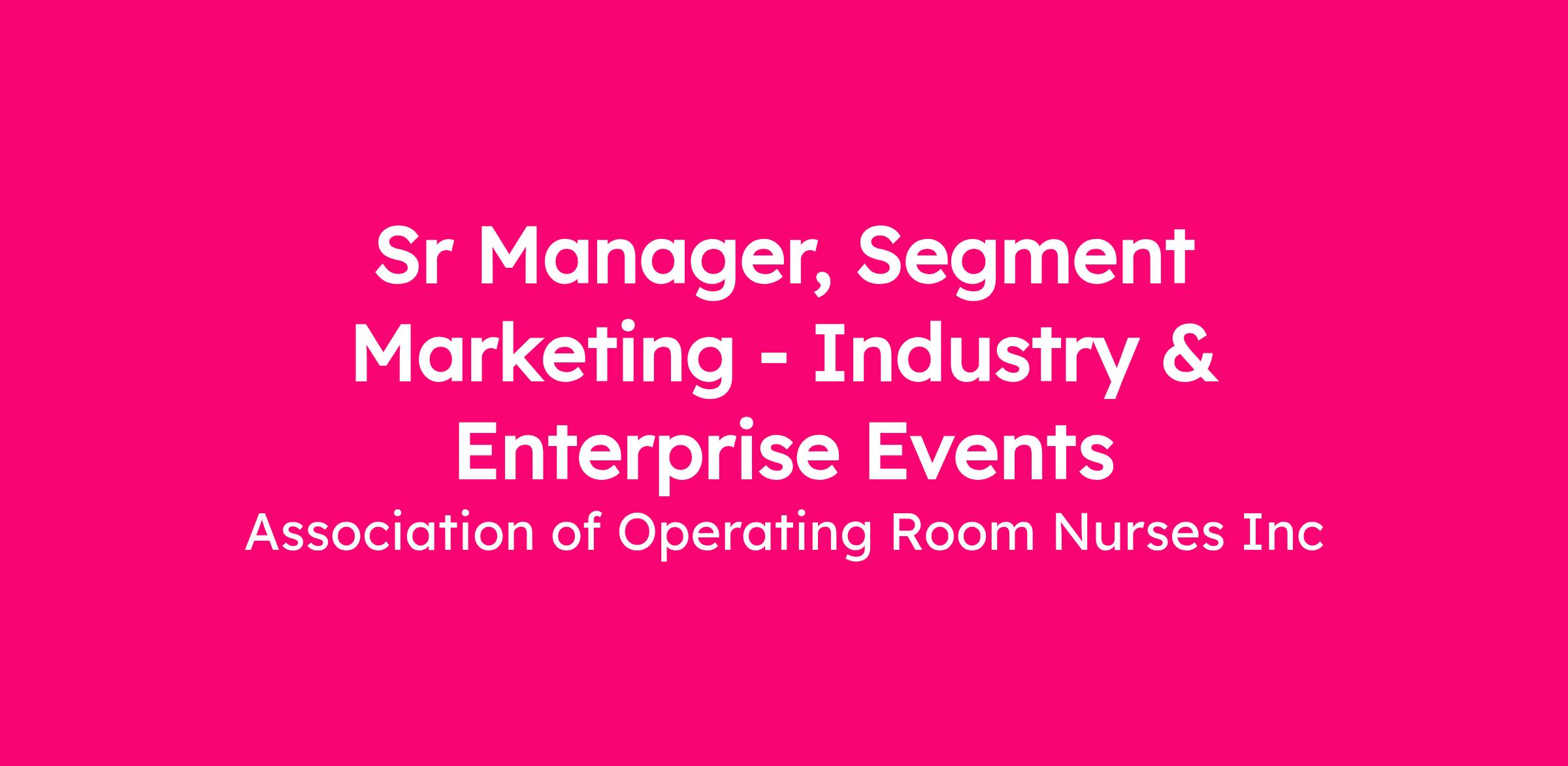 Why consider AORN, Association of periOperative Registered Nurses, as the next place for your career as our Sr Manager, Segment Marketing – Industry & Enterprise Events? Because we’re innovative and all about quality and collaboration – we’re continually seeking to enhance our offerings to allow us to better tailor to the needs of our nurse members while expanding our market position and growing revenue across our business and sales divisions.