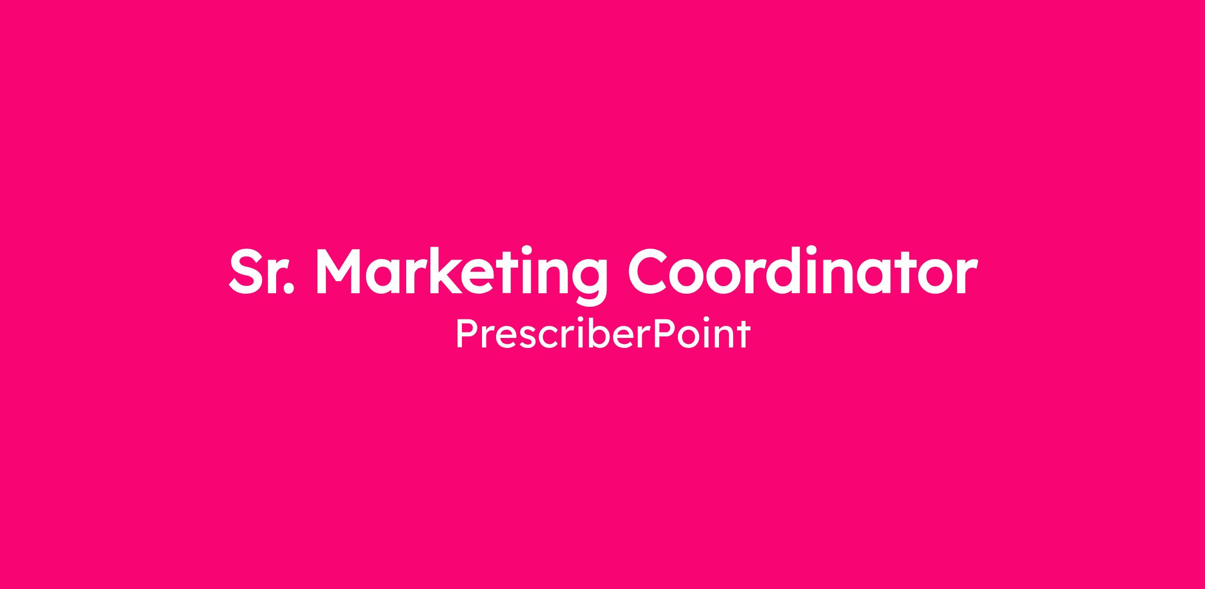 We're looking for a Senior Marketing Coordinator to own hands-on execution of direct marketing campaigns for PrescriberPoint's digital agency. You'll work across email, SMS, and digital channels to help healthcare providers connect with the tools and resources they need to support their patients.