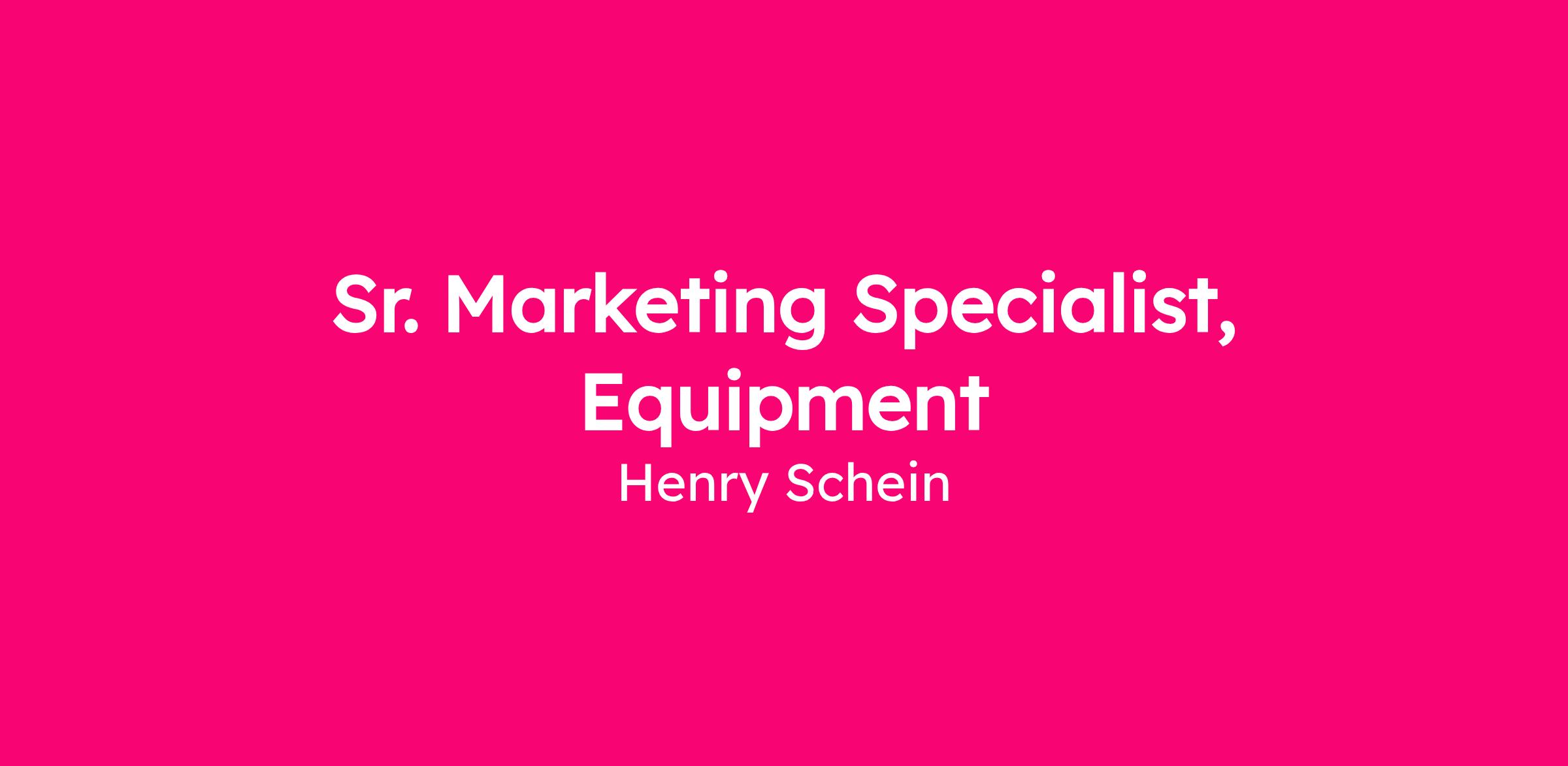 Sr. Marketing Specialist, Equipment
