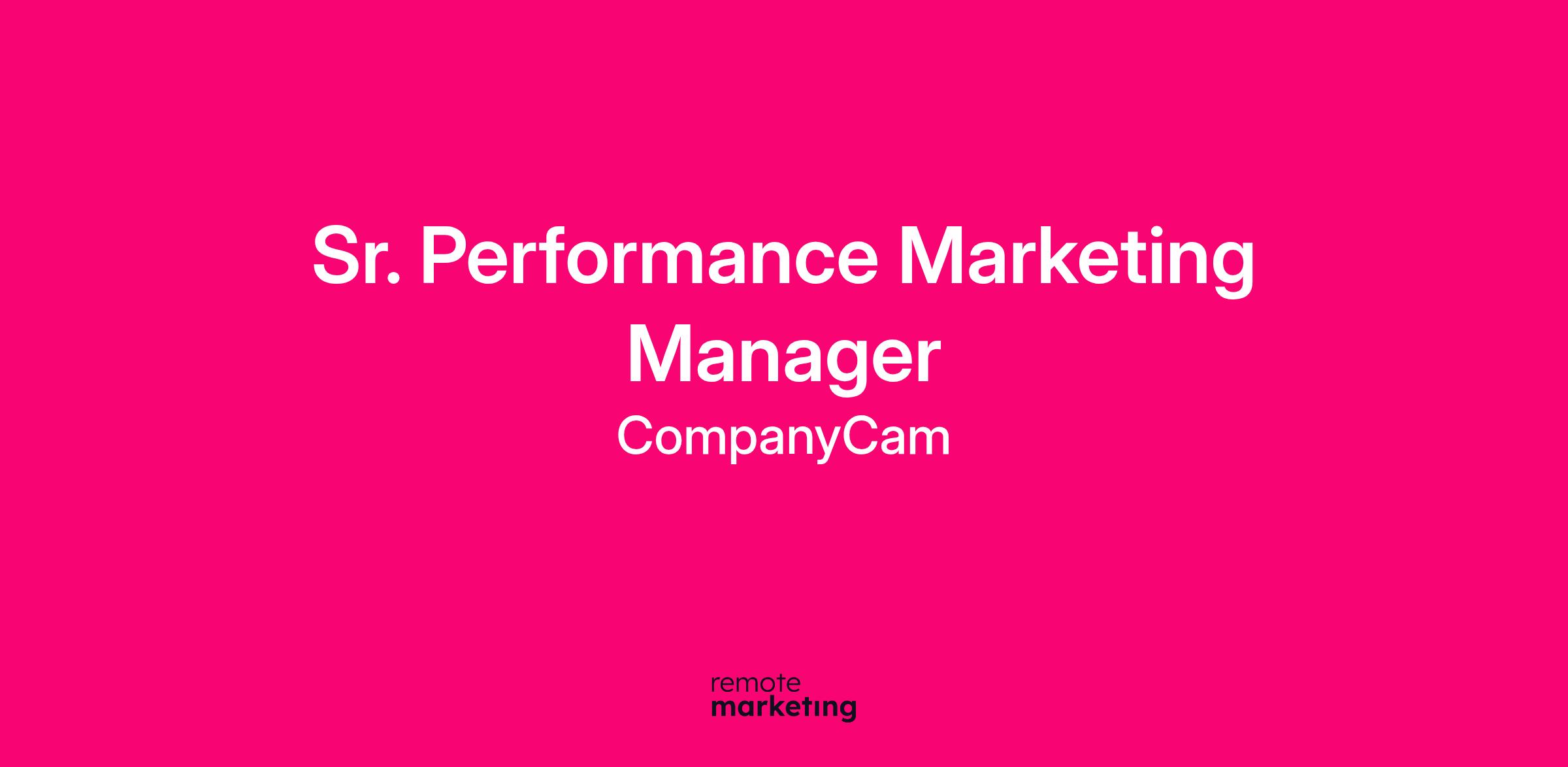 We're looking for a Sr. Performance Marketing Manager to accelerate CompanyCam’s growth by building and optimizing full-funnel marketing strategies that connect creative, media, and web experiences into scalable systems. You’ll join a collaborative, fast-moving marketing team focused on driving measurable impact through data-driven decision-making, experimentation, and continuous improvement. In this role, you’ll lead strategic planning, guide campaign execution across key channels, mentor marketers, and unlock insights that fuel our acquisition and revenue goals. Your work will directly shape our approach to paid media, testing, and performance analytics, ensuring we hit our growth targets.