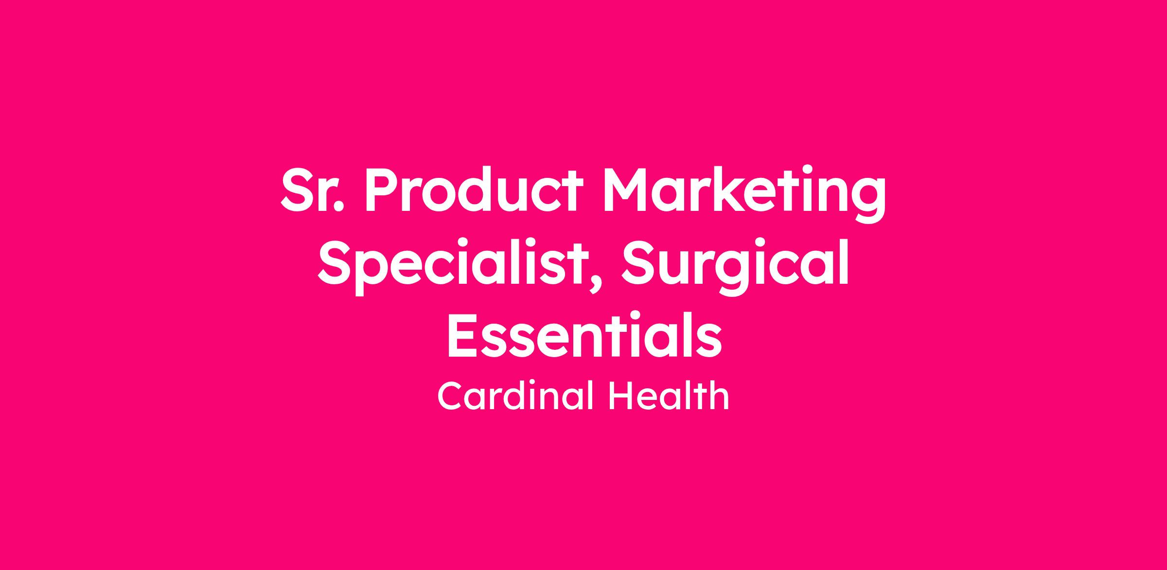 This Sr. Product Marketing Specialist role will have Commercial U.S. (Downstream) and Global Portfolio (Upstream) focus of select product lines under the Cardinal Health Brand Surgical Essentials category.