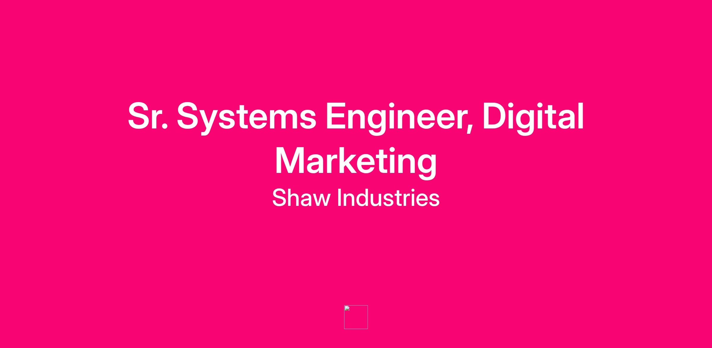 The Sr. Systems Engineer delivers platform expertise, supports incident response, and contributes to system architecture to advance Shaw Industries’ digital marketing initiatives. This role is responsible for designing and optimizing enterprise systems to meet performance, security, and scalability requirements, while supporting technical strategy, cross-team collaboration, and continuous innovation. This position will work remotely.