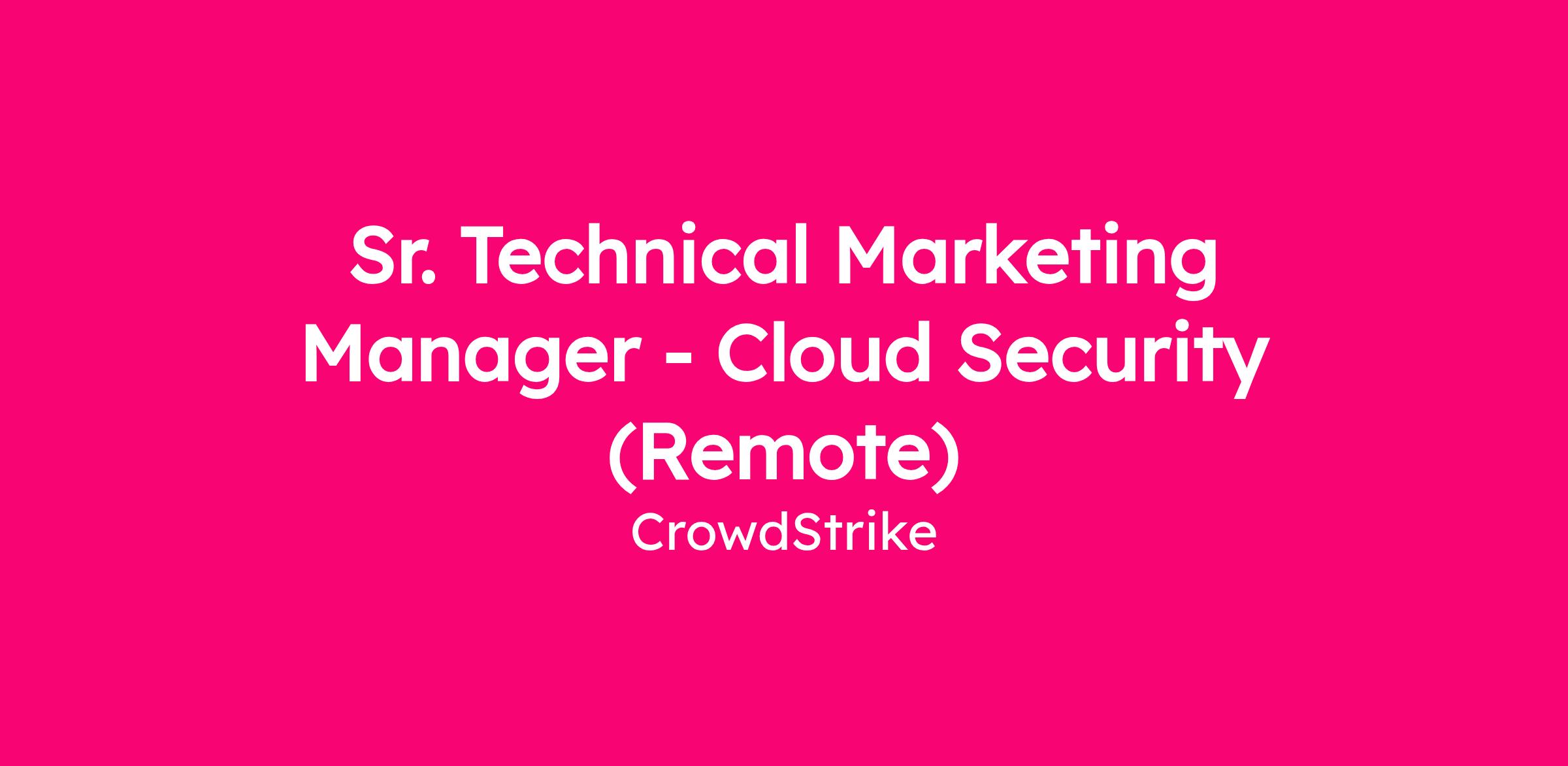 At CrowdStrike, we are redefining security for the modern era. As a Senior Technical Marketing Manager for Cloud Security, you will not only shape how customers secure their cloud infrastructure and workloads, but also influence the product marketing strategies that drive adoption, competitive wins, and CrowdStrike's mission to stop breaches.