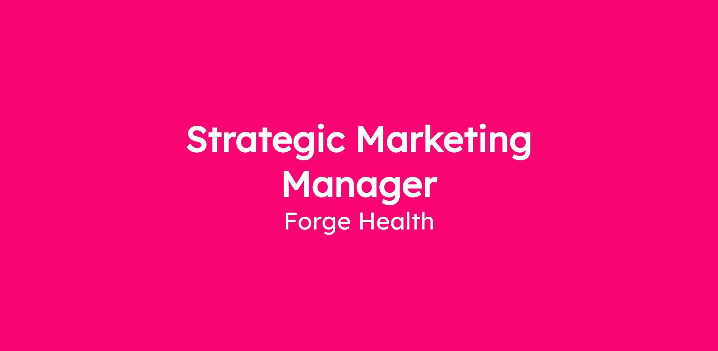 The Strategic Marketing Manager owns marketing strategy and execution to support Forge Health's growth, client retention, and brand elevation in behavioral health. Reporting to the Head of Commercial Growth, this builder role leads positioning, go-to-market planning, content, digital channels, and agency partnerships to drive awareness, engagement, and revenue, with required mental health care experience (IOP/patient care preferred).​