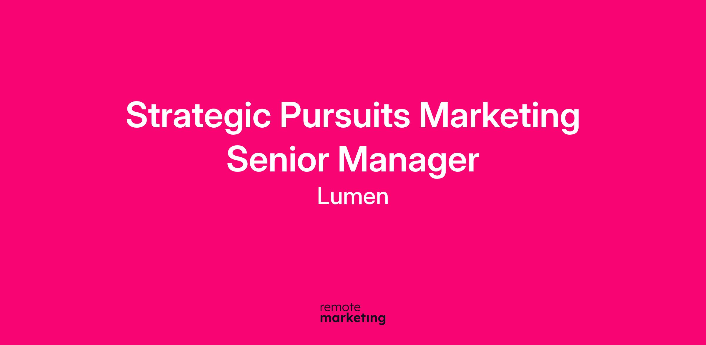 As a Strategic Pursuits Marketing Senior Manager, you will lead the strategy and execution of key initiatives in the Lumen portfolio for the Security and Media businesses. You will ensure that we are positioning our products to solve real customer problems and drive business outcomes. You will also enable Lumen sellers and key partners to cross-sell, upsell, and offer new products by leveraging data, insights, and technology. You will work closely with product management, sales, marketing, and customer success teams to deliver innovative and effective marketing solutions that drive customer loyalty, revenue growth, and new partnerships.