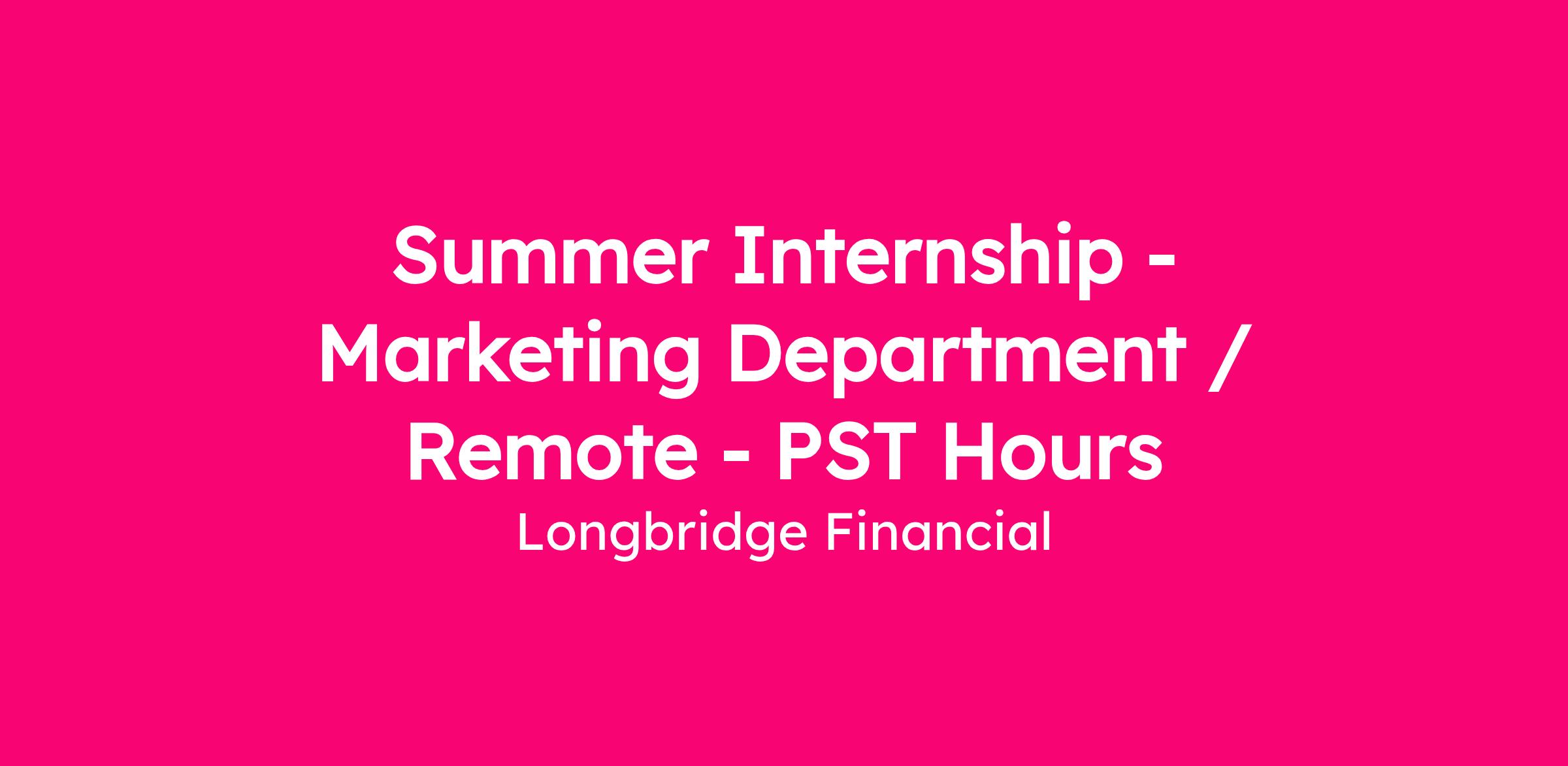 Longbridge Financial is seeking a creative and motivated Summer Intern for our Marketing department. The ideal intern will support our Marketing team with copywriting and content creation. This role is perfect for a strong writer who is eager to gain hands-on experience crafting marketing content across multiple channels. Design and video skills are a plus, especially experience using creative software. This internship is remote, M-F, West Coast hours preferred.