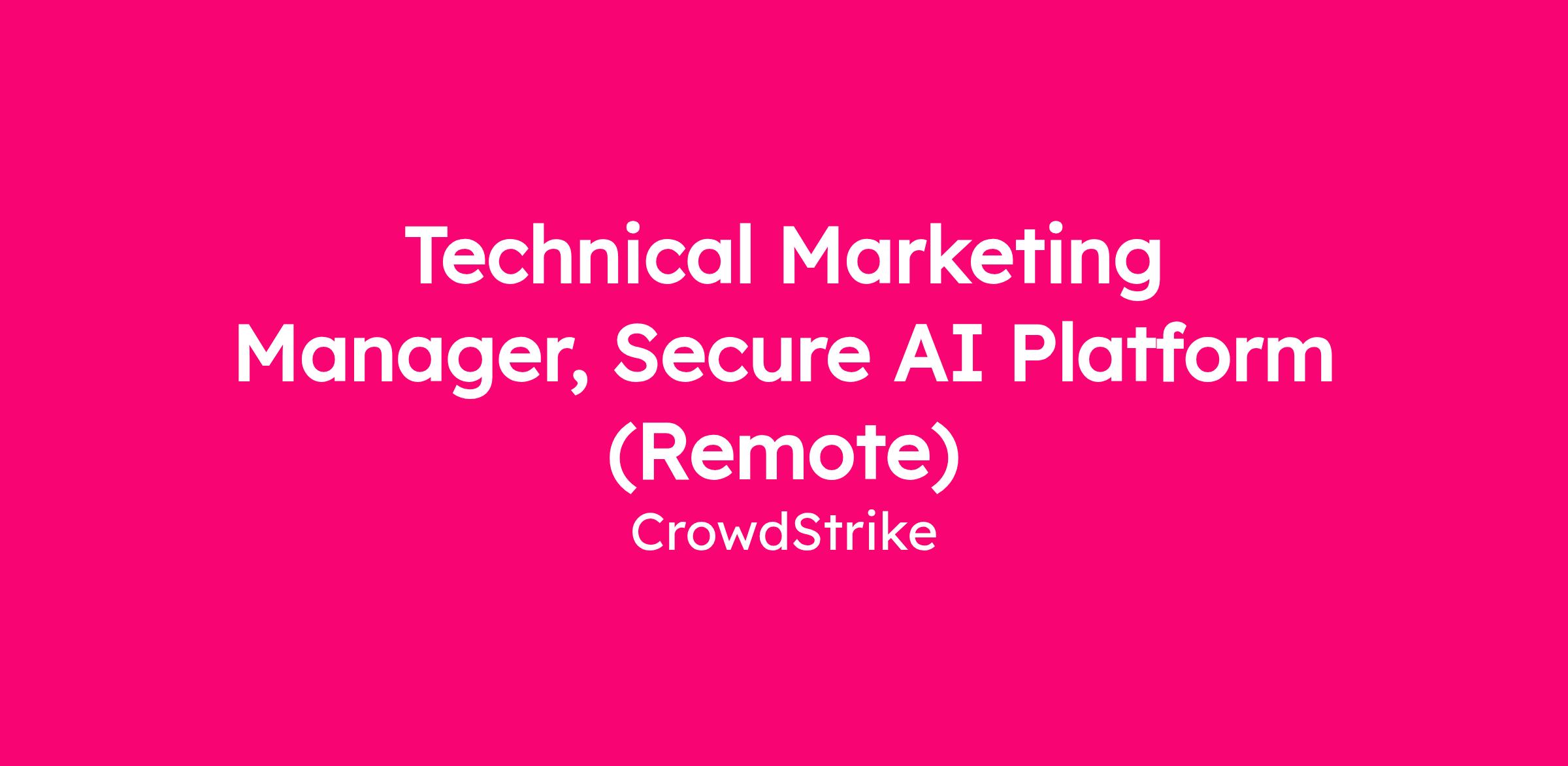 The Technical Marketing Manager for Secure AI Platform will combine a deep technical expertise in AI security with hands-on marketing execution to demonstrate how CrowdStrike protects the complete AI lifecycle and attack surface. This role reports to the Head of AI Security Product Marketing and serves as a critical technical voice for the product marketing team, creating compelling demonstrations, technical content, and enablement assets that accelerate customer adoption and showcase CrowdStrike's differentiation in securing AI.