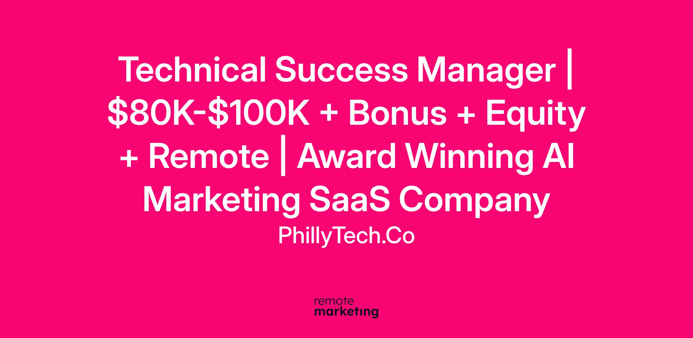 Technical Success Manager | $80K-$100K + Bonus + Equity + Remote | Award Winning AI Marketing SaaS Company