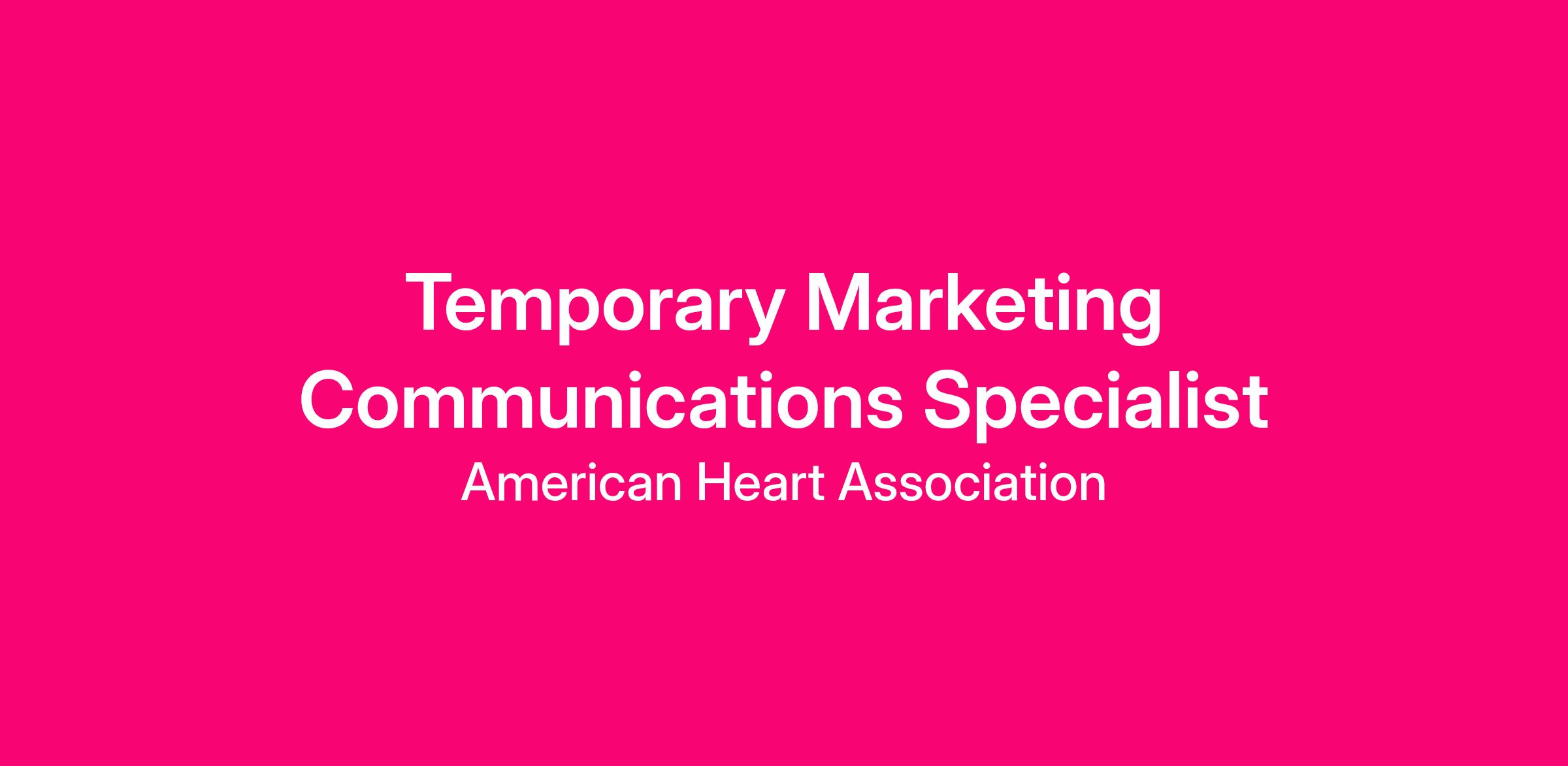 This is a Temporary Part-Time Marketing Communications Specialist role at 19 hours/week for approximately two months. This position can be home-based.