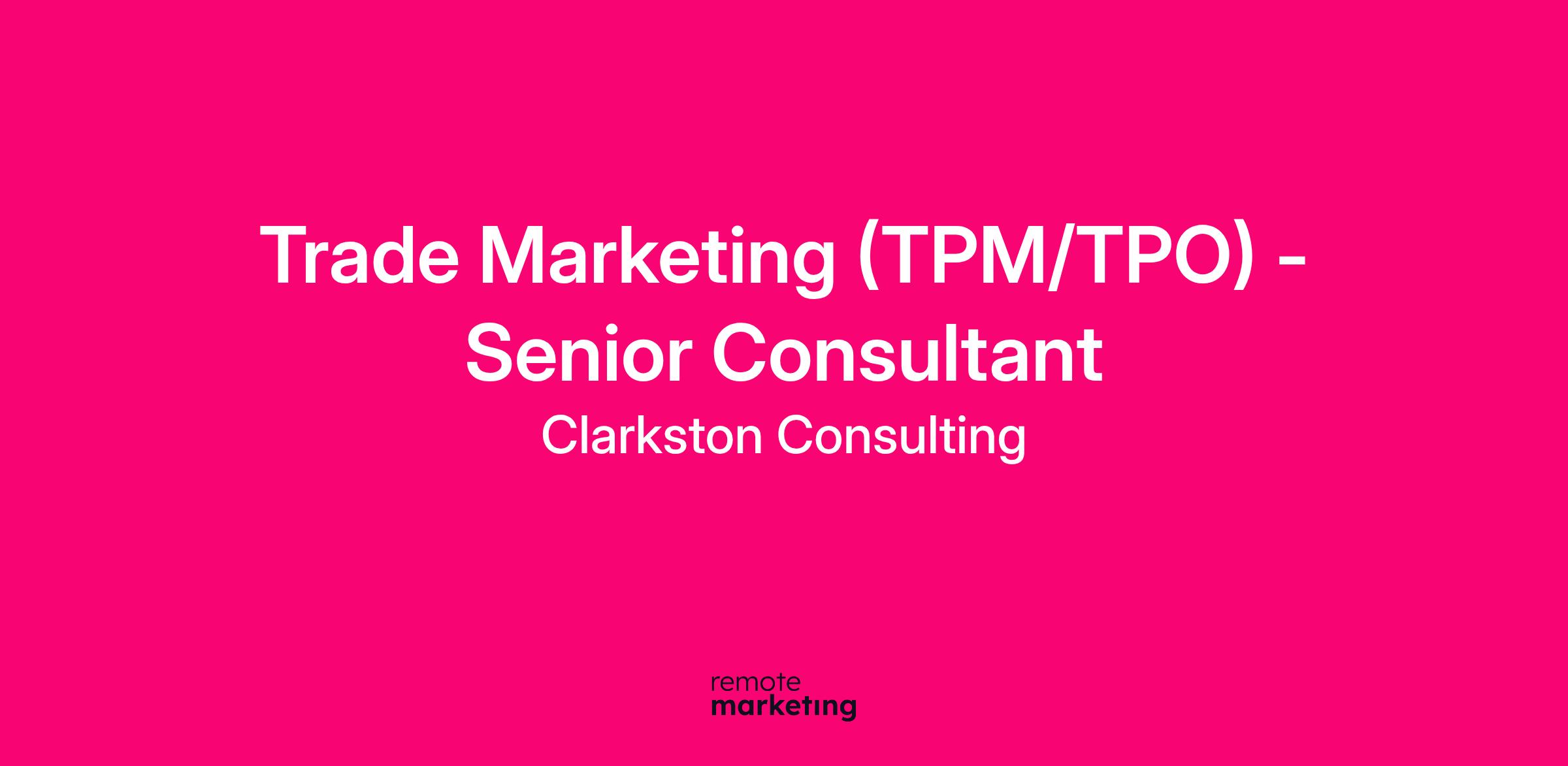 As a Trade Marketing (TPM/TPO) - Senior Consultant at Clarkston you will: