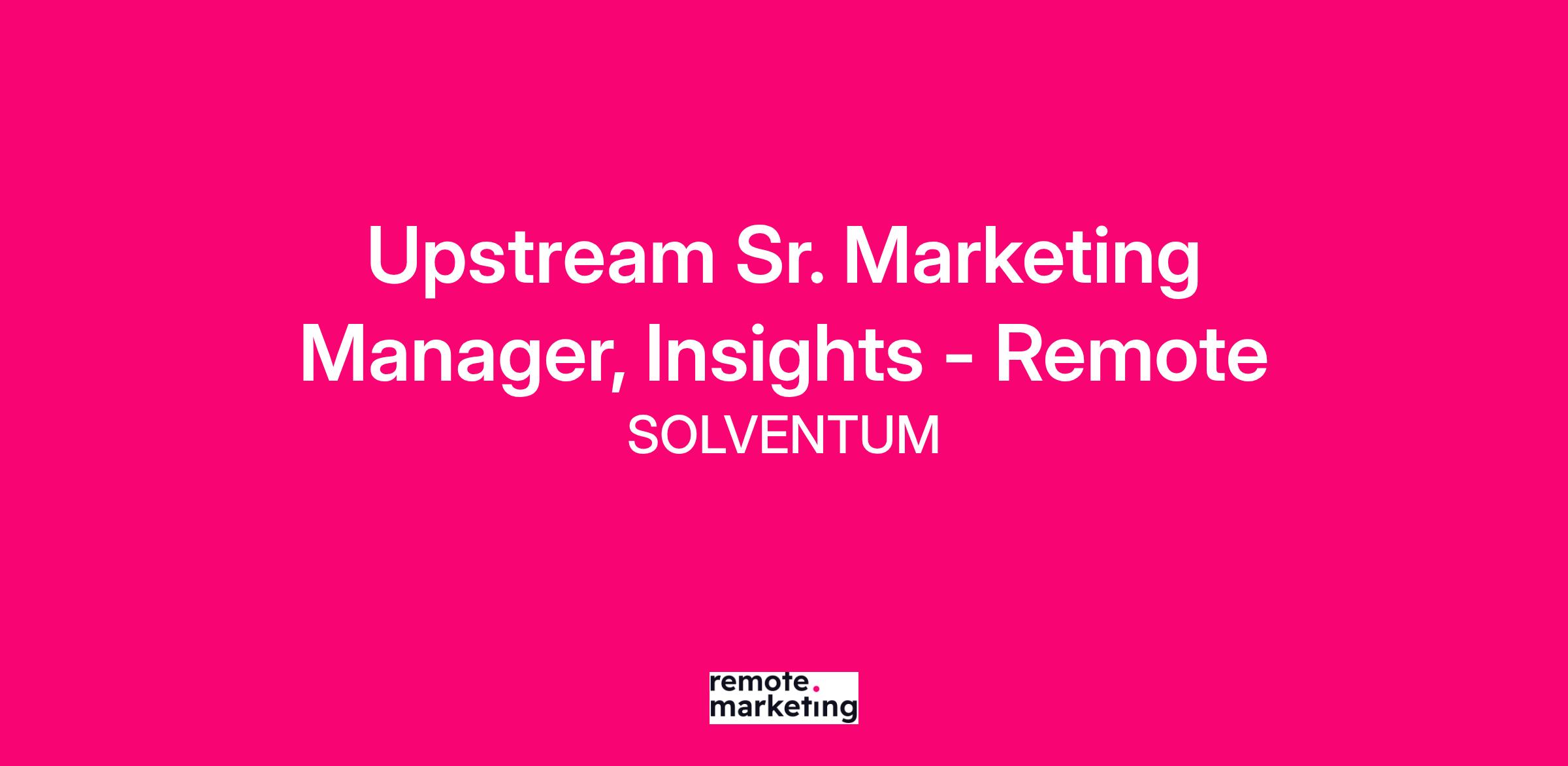 As Upstream Sr. Marketing Manager, Insights you will have the opportunity to tap into your curiosity and collaborate with some of the most innovative and diverse people around the world. Here, you will make an impact by: