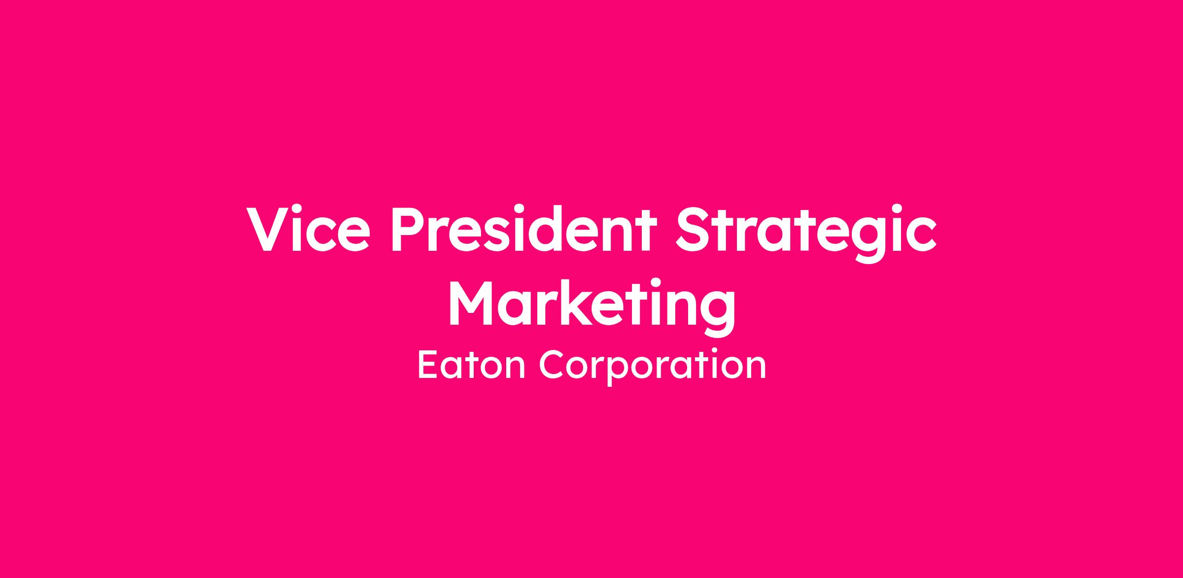Eaton Corporation is looking for a Vice President Strategic Marketing. This position can be located at any Eaton hub in the Midwest or Southeast, or be fully remote.