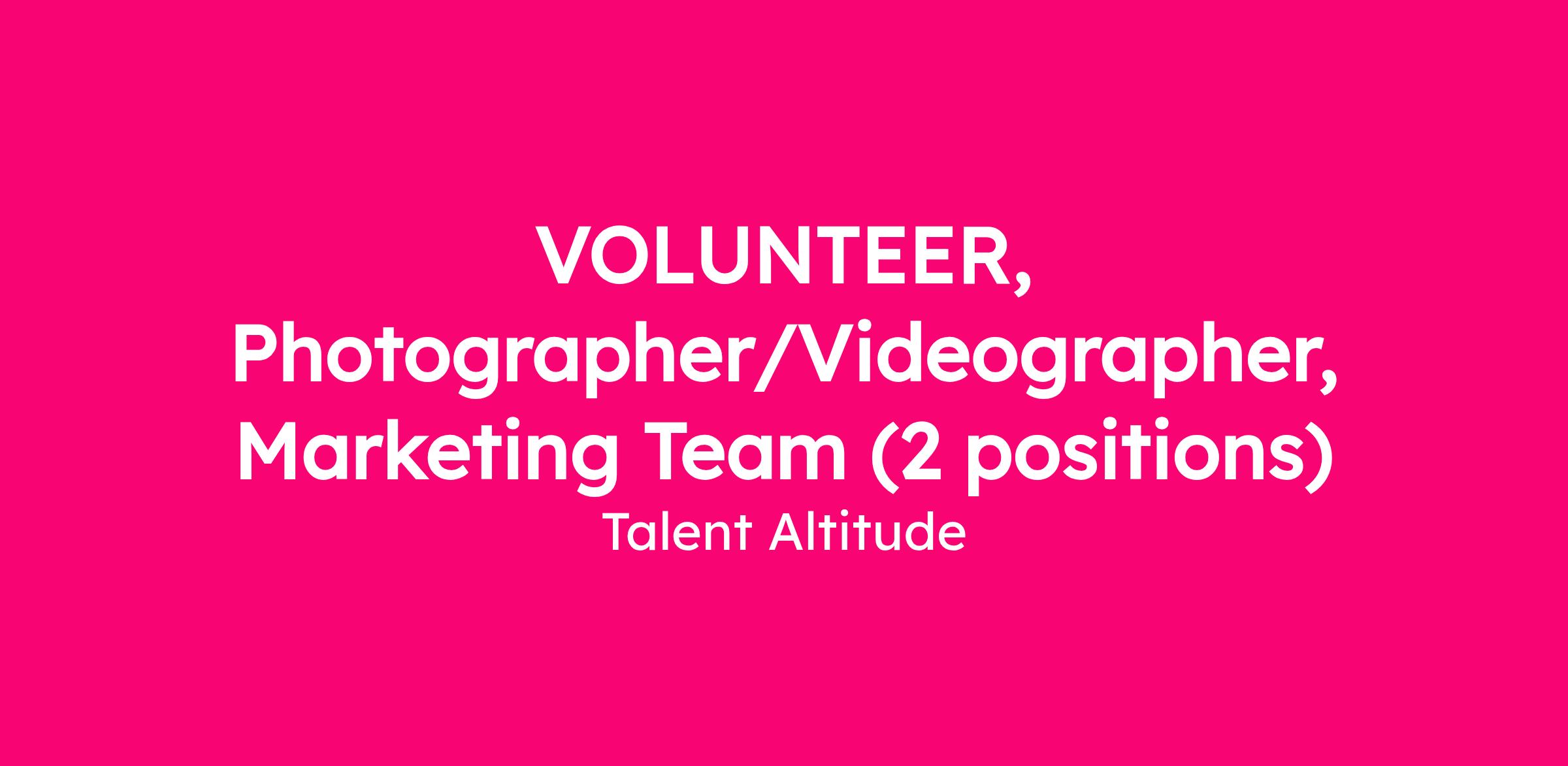 Position: VOLUNTEER, Photographer/Videographer, Marketing Team (2 positions)