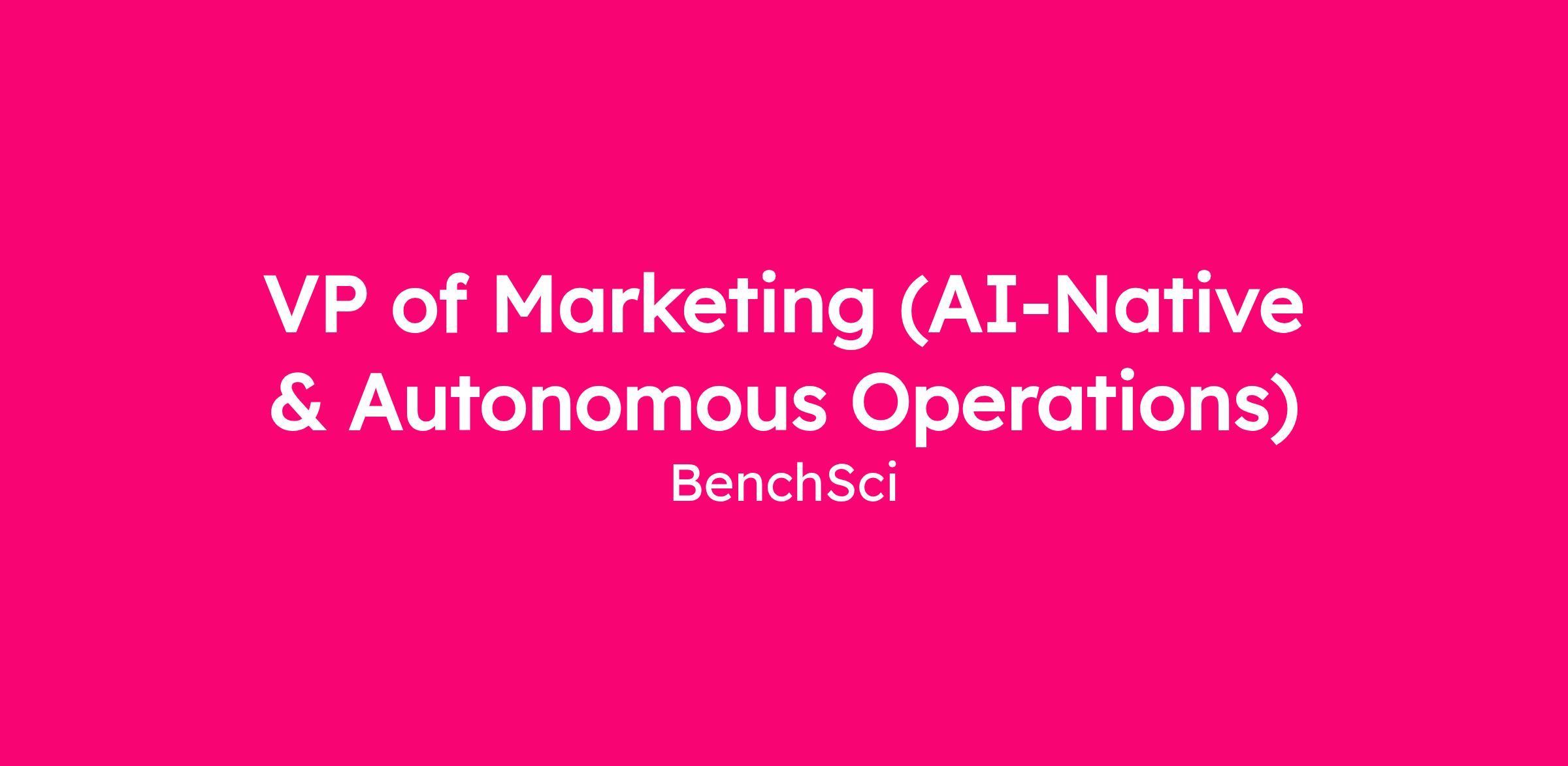 BenchSci is looking for a VP of Marketing to redefine what a marketing department looks like in the age of generative intelligence. You will own BenchSci’s brand, demand, and market position in biopharma R&D — and build the agentic infrastructure to power it, from scratch.