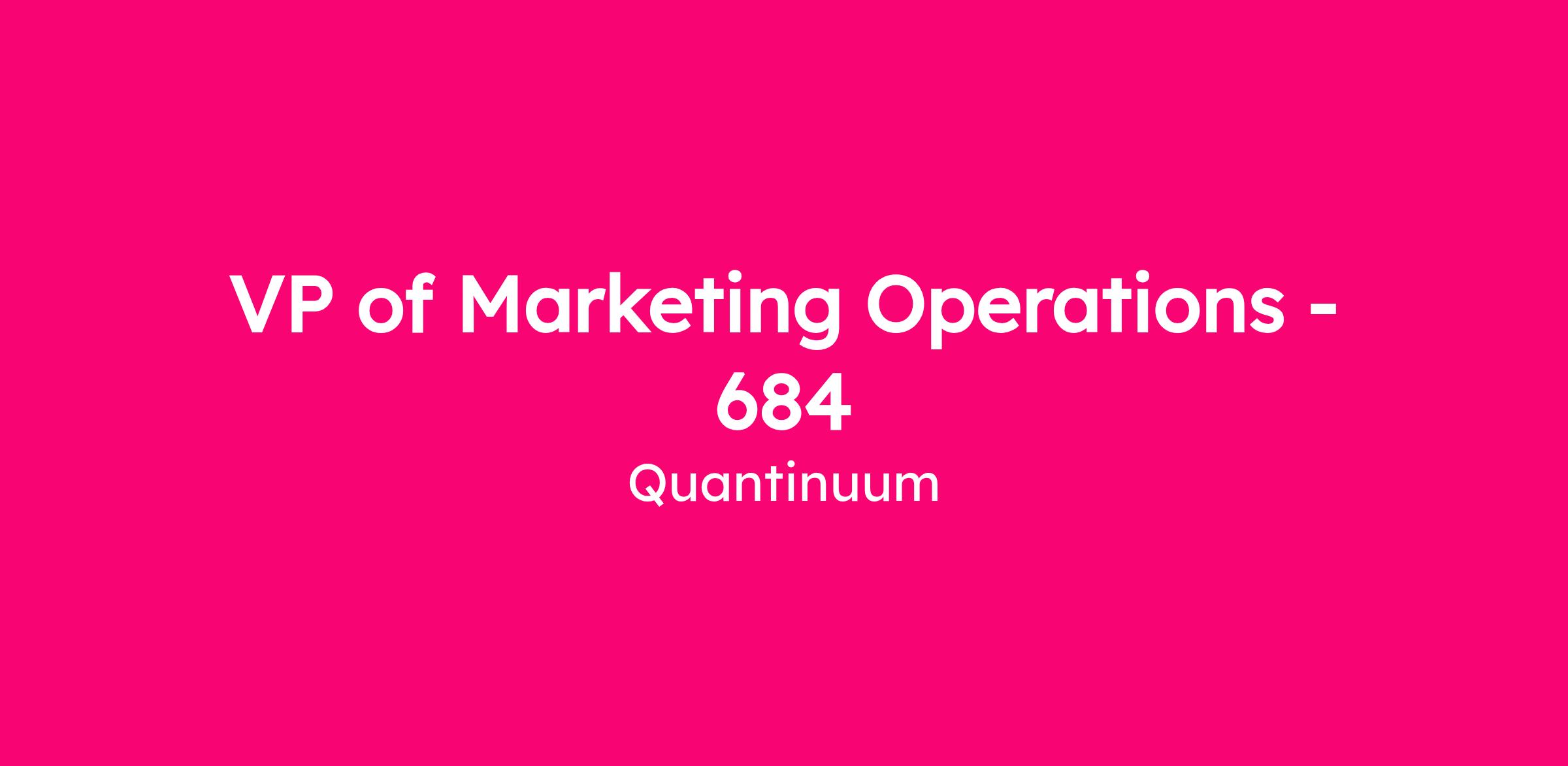 We are seeking a VP of Marketing Operations (Chief of Staff to the CMO).