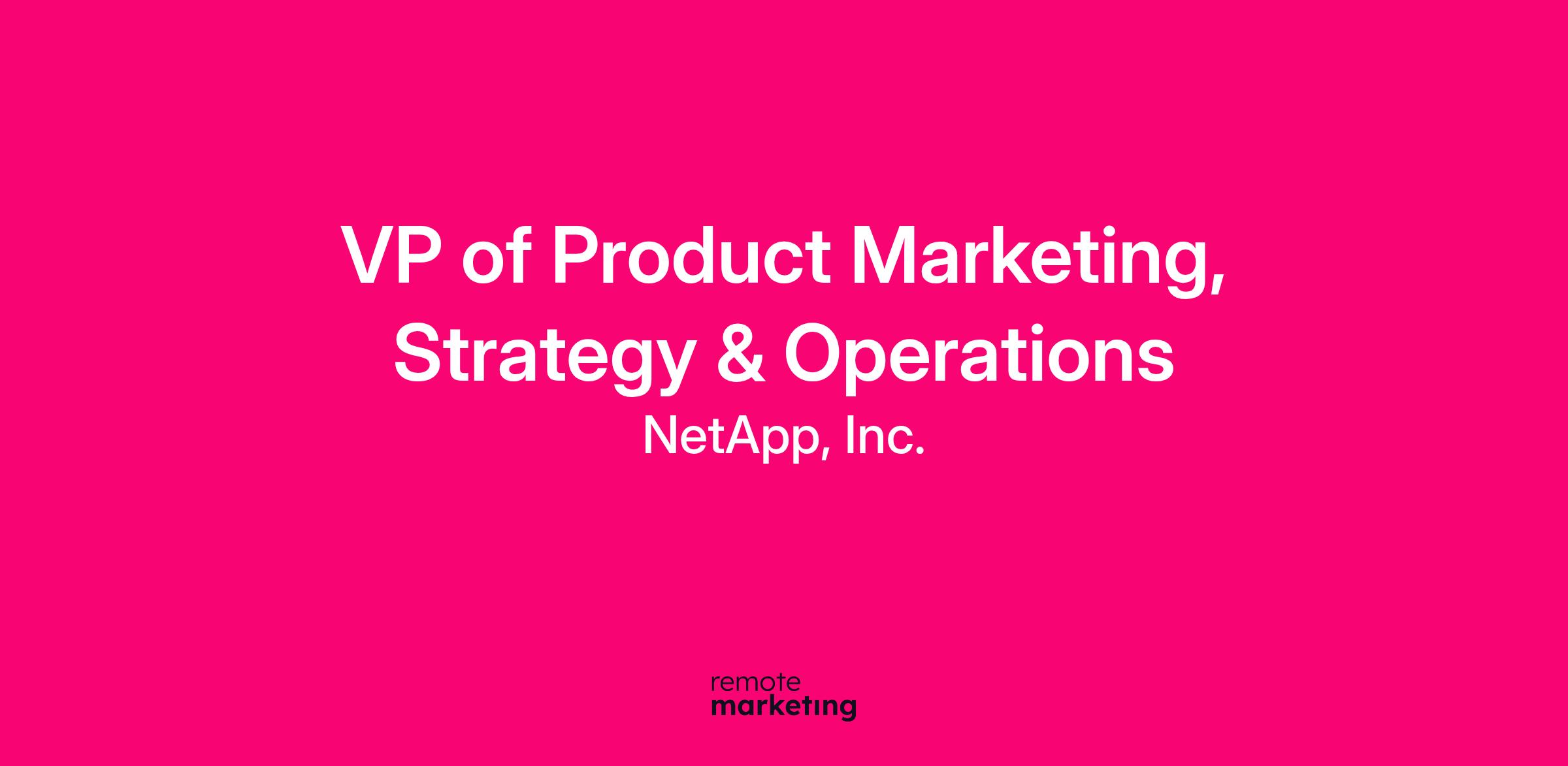 The VP, Product Marketing, Strategy & Operations is a critical leadership role responsible for the systems, insights, and strategic functions that enable the Product Marketing organization to operate as a force multiplier for NetApp’s product and platform strategy. This leader will build and scale the operational backbone of the PMM organization - driving competitive intelligence, GTM operations, pricing strategy support, performance analytics, and incubation marketing for new and emerging product areas. This role partners closely with all of Product Marketing, Product Management, Sales & Enablement, Finance, Corporate Marketing, and Business Units to ensure that Product Marketing is guided by data, produces world-class deliverables, is grounded in process excellence, and positioned to deliver strong GTM strategy and execution.Â