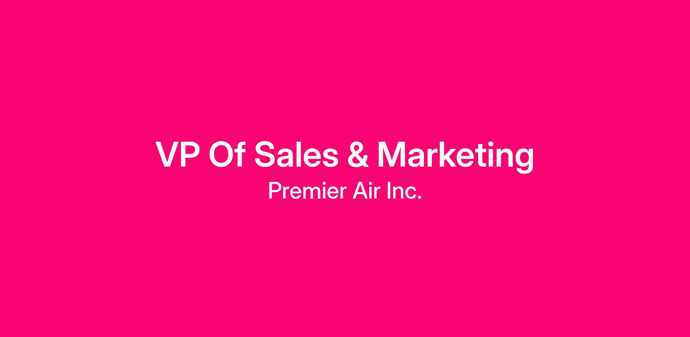 The Vice President of Sales & Marketing is a senior executive responsible for driving revenue growth, brand positioning, and customer experience excellence across Premier’s Charter, MRO, and FBO businesses. This role is not a sales-only position. Marketing leadership, brand development, and demand generation are core responsibilities. Reporting directly to the CEO, this role will lead the development and execution of Premier’s commercial strategy, overseeing both sales and marketing functions while fostering a culture of collaboration and cross-selling grounded in real aviation operating dynamics.