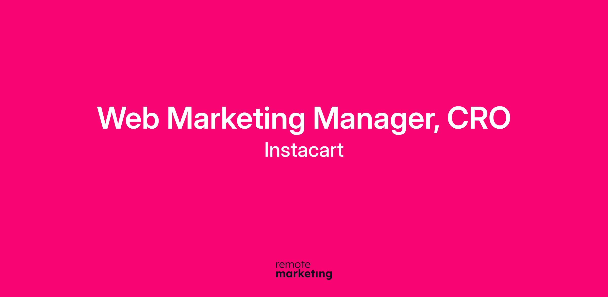 We are currently seeking a CRO focused web marketing manager. This role focuses on optimizing our site across customer segments ensuring site visitors become long lasting, highly engaged customers of Instacart. The role is uniquely positioned to help drive broader marketing efficiencies by improving conversion rates for both organic, free traffic and paid traffic across a multitude of website surfaces. The potential to drive monumental impact is huge. The core KPI a candidate will be responsible for is web conversion rate, which is crucial in driving cost effective customer acquisition, order frequency & ultimately our company financials. The role will, however, carefully balance this with cross functional requirements from design and brand to search engine optimization.
