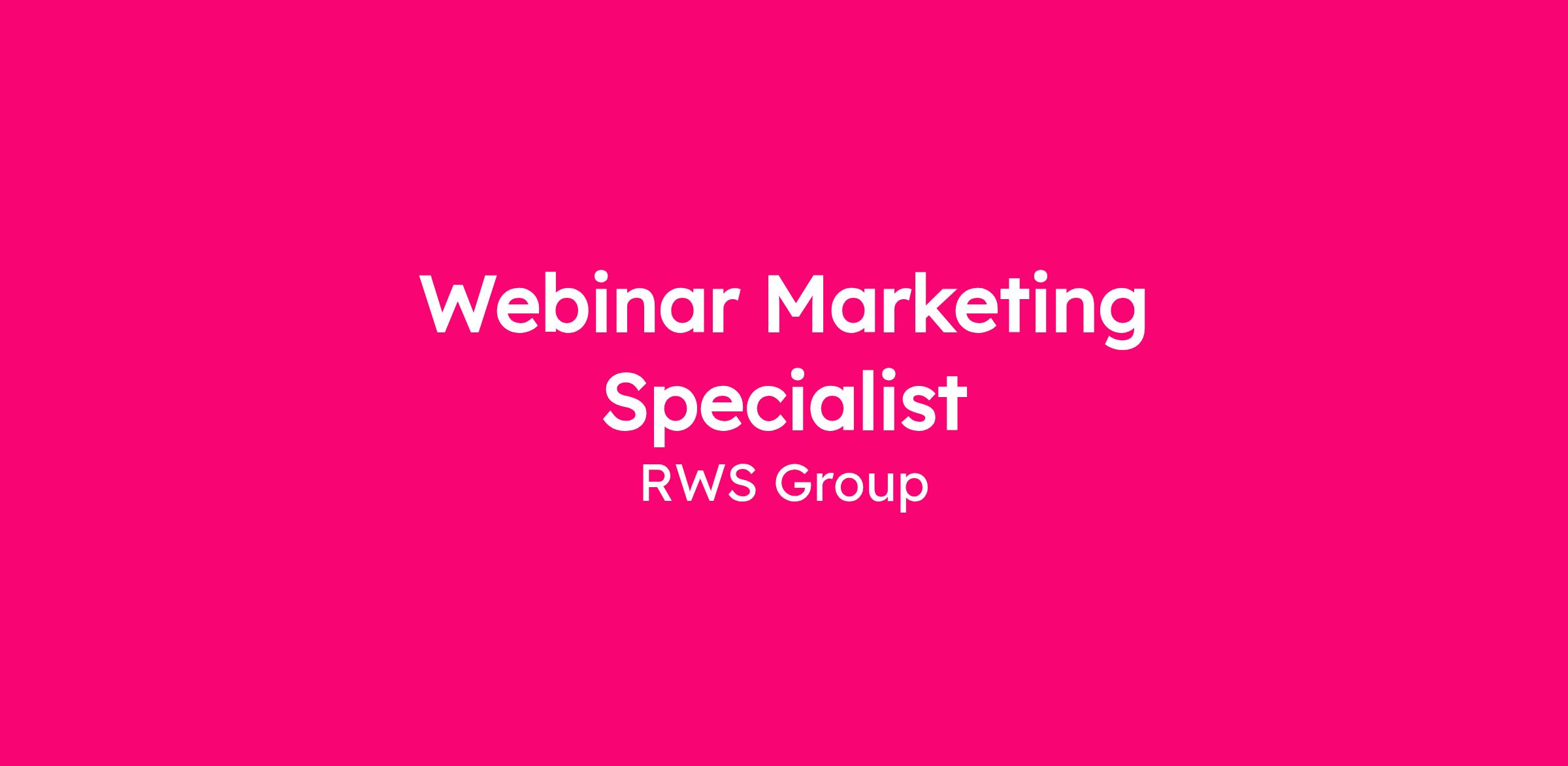 We are looking for a proactive and strategic Webinar Specialist to own and optimise RWS’s global and brand webinar programme. This role will take full ownership of the global webinar calendar and programme performance, while partnering closely with Product Marketing and Campaign Managers to support their webinar initiatives.The Webinar Specialist will drive consistency, quality and measurable impact across all webinar activity.You will be responsible for developing themes and topics aligned to business priorities, sourcing speakers, maintaining the global webinar schedule, and continuously improving programme effectiveness. The role requires strong project management, commercial awareness and a passion for delivering engaging, high-quality virtual experiences.